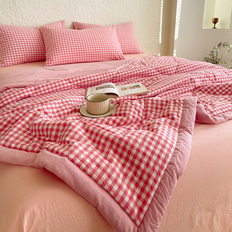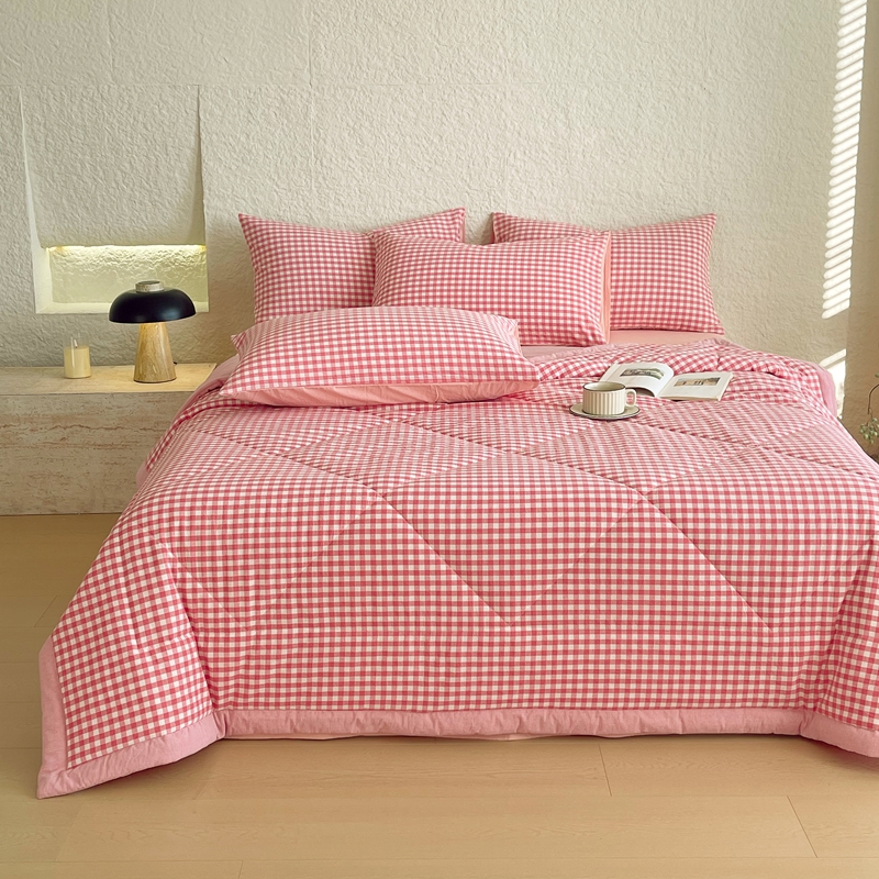 宝士康家纺 2026新款10A抗菌无印风单夏被/夏被四件套 被子被芯 粉小格