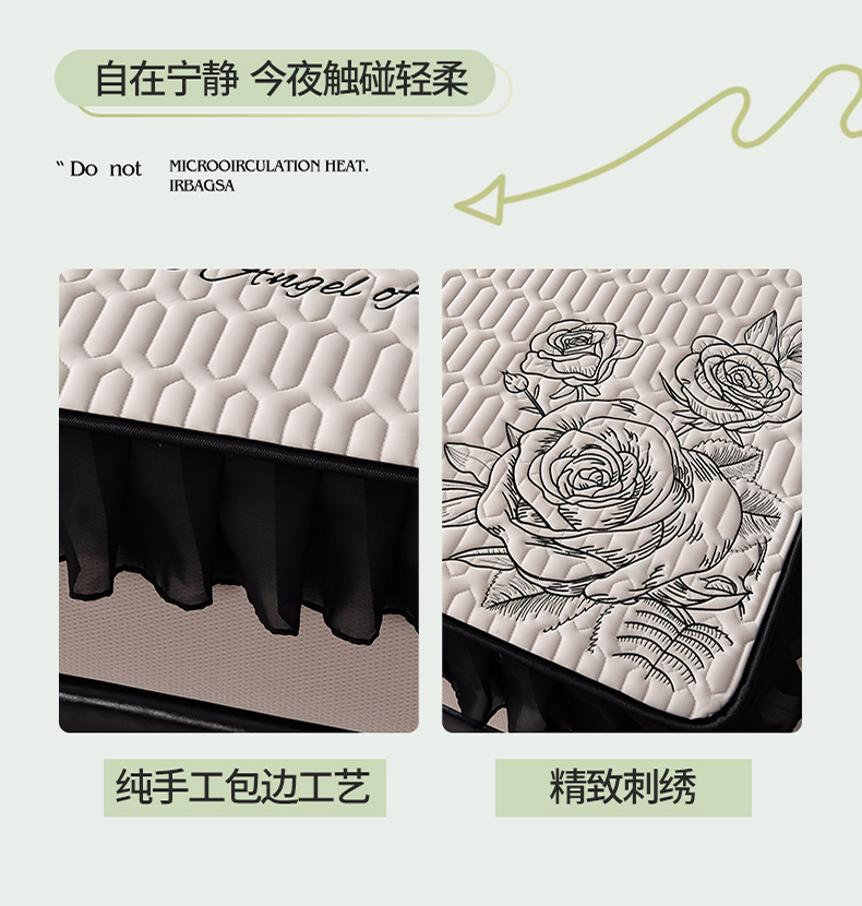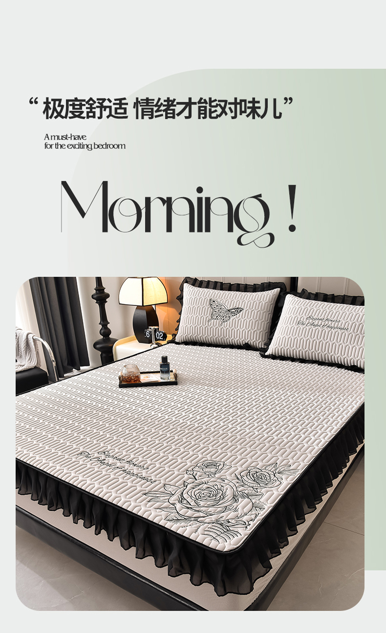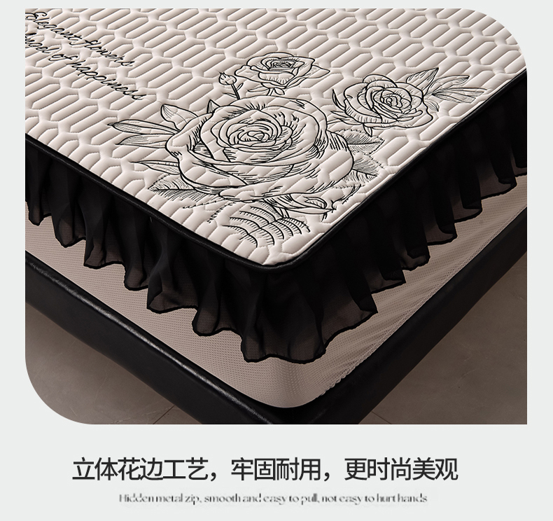 商品名称:(总)炫拼家纺 2026新款A类凉感丝花边床笠款乳胶凉席-法式玫瑰