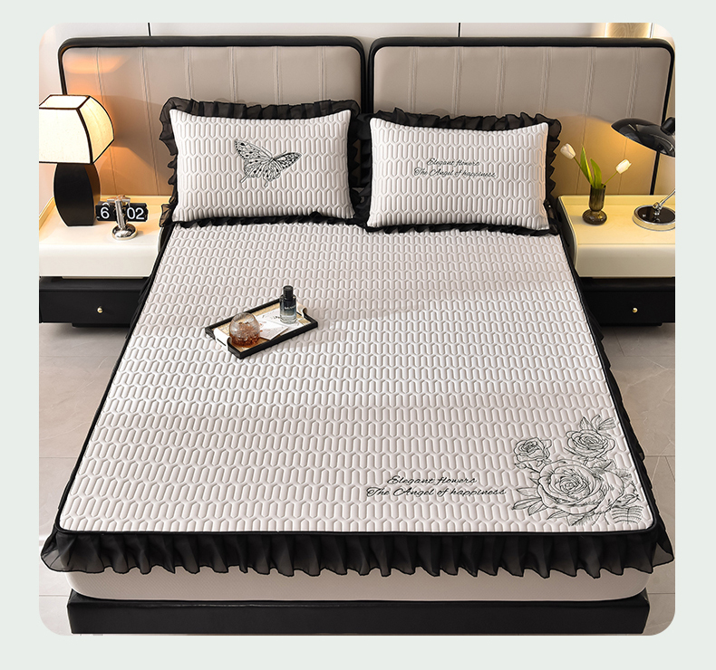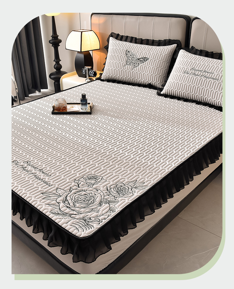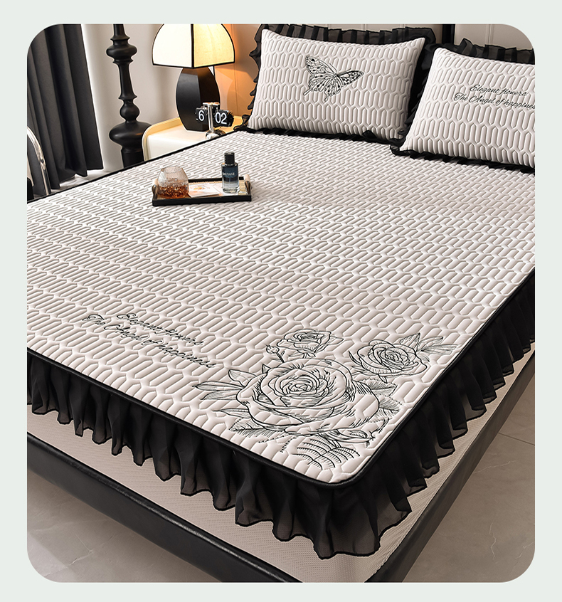 (总)炫拼家纺 2026新款A类凉感丝花边床笠款乳胶凉席-法式玫瑰