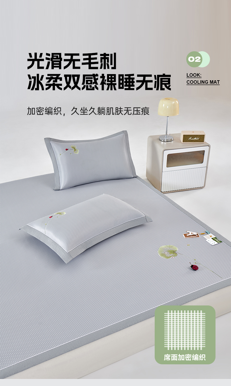 (总)小牛席业 2026新款小冰块大象凉感冰丝席凉席竹席藤席冰藤席乳胶席豆豆席,粉色,香槟,灰色,绿色,蓝色