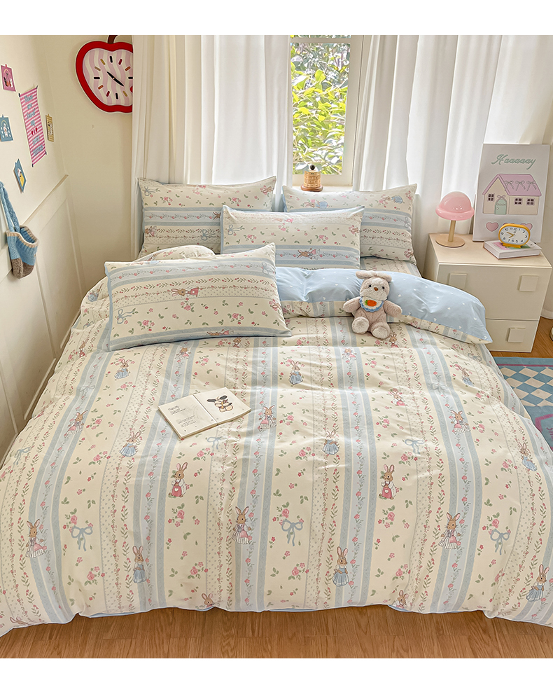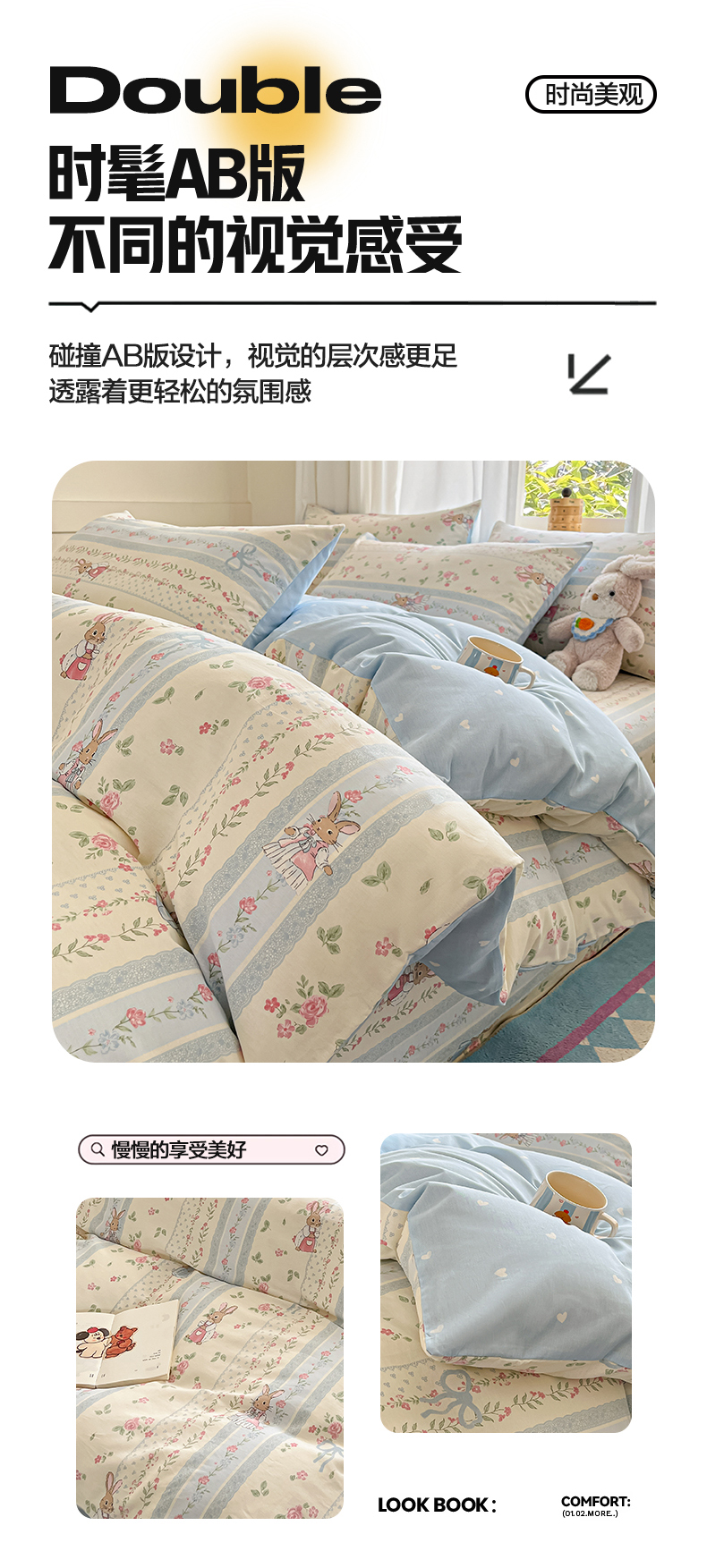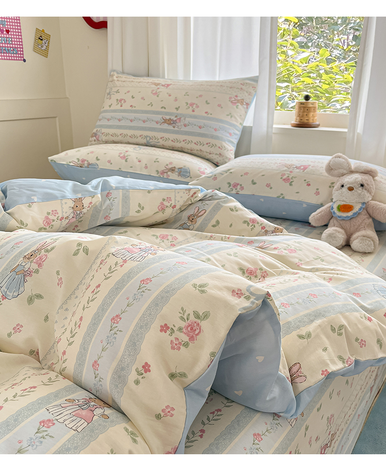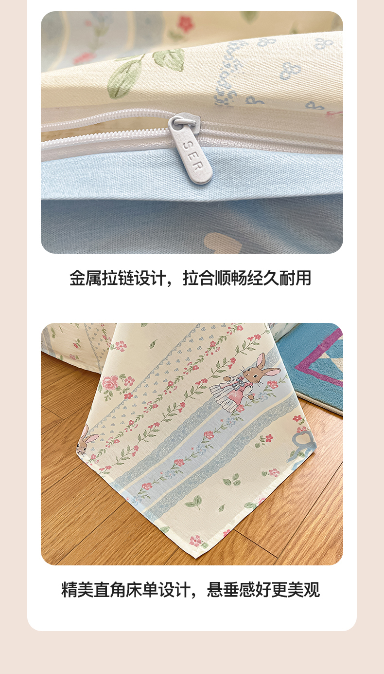 首尔家纺 2026新款全棉纯棉小清新四件套 玫瑰兔语