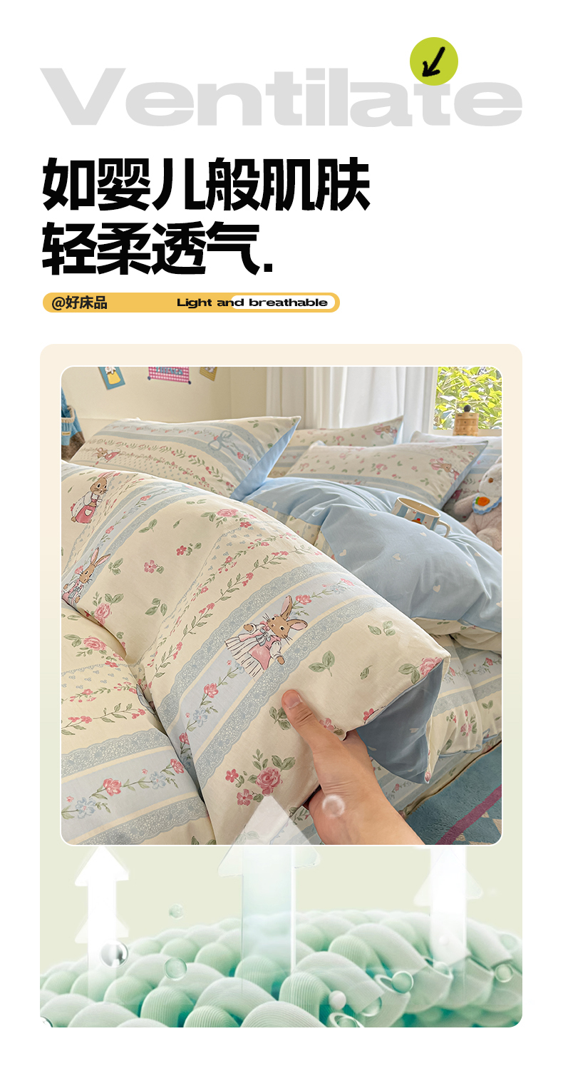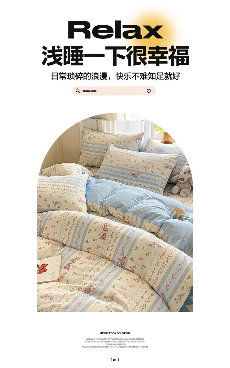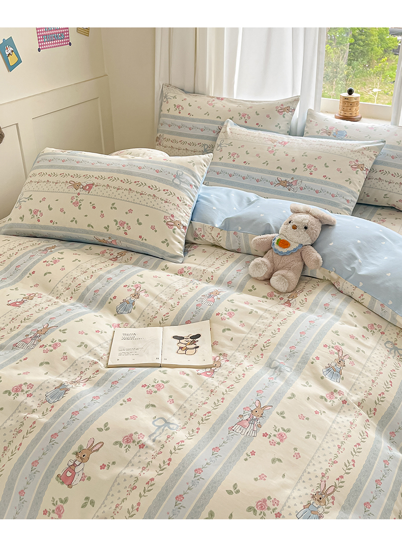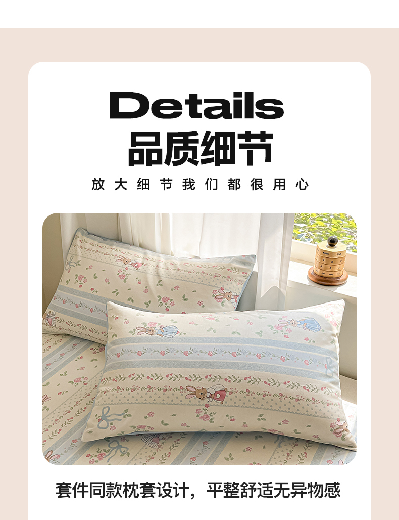 首尔家纺 2026新款全棉纯棉小清新四件套 玫瑰兔语