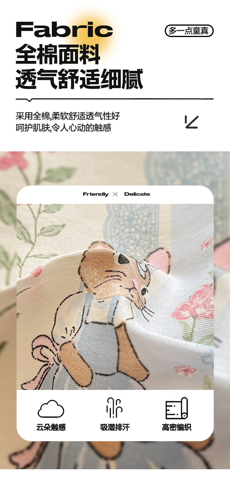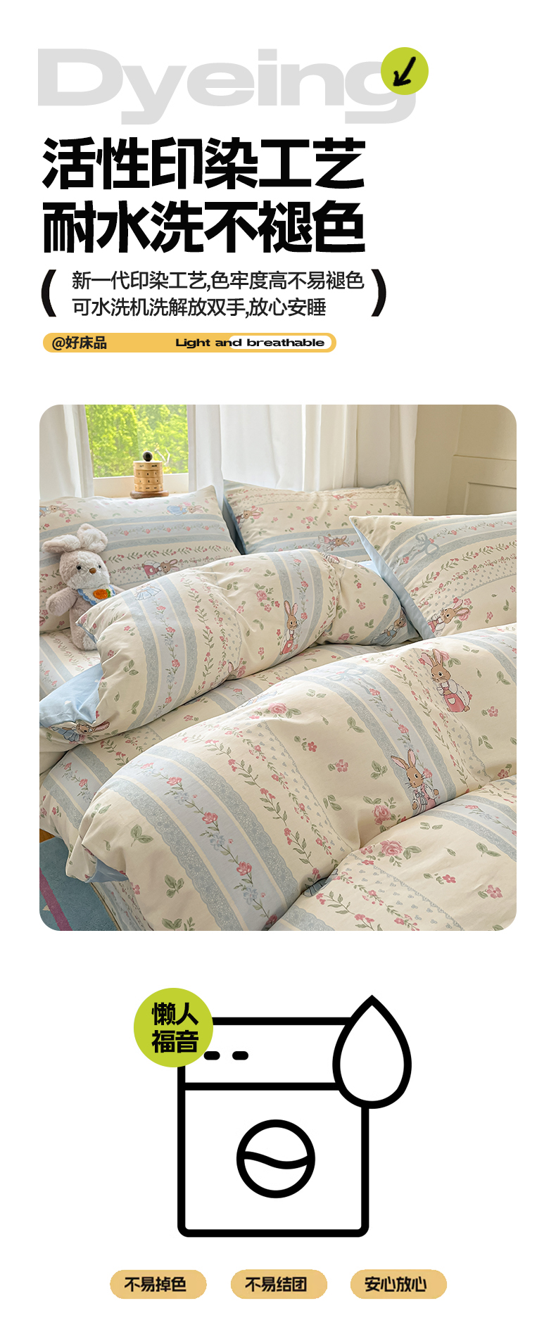 商品名称:首尔家纺 2026新款全棉纯棉小清新四件套 玫瑰兔语