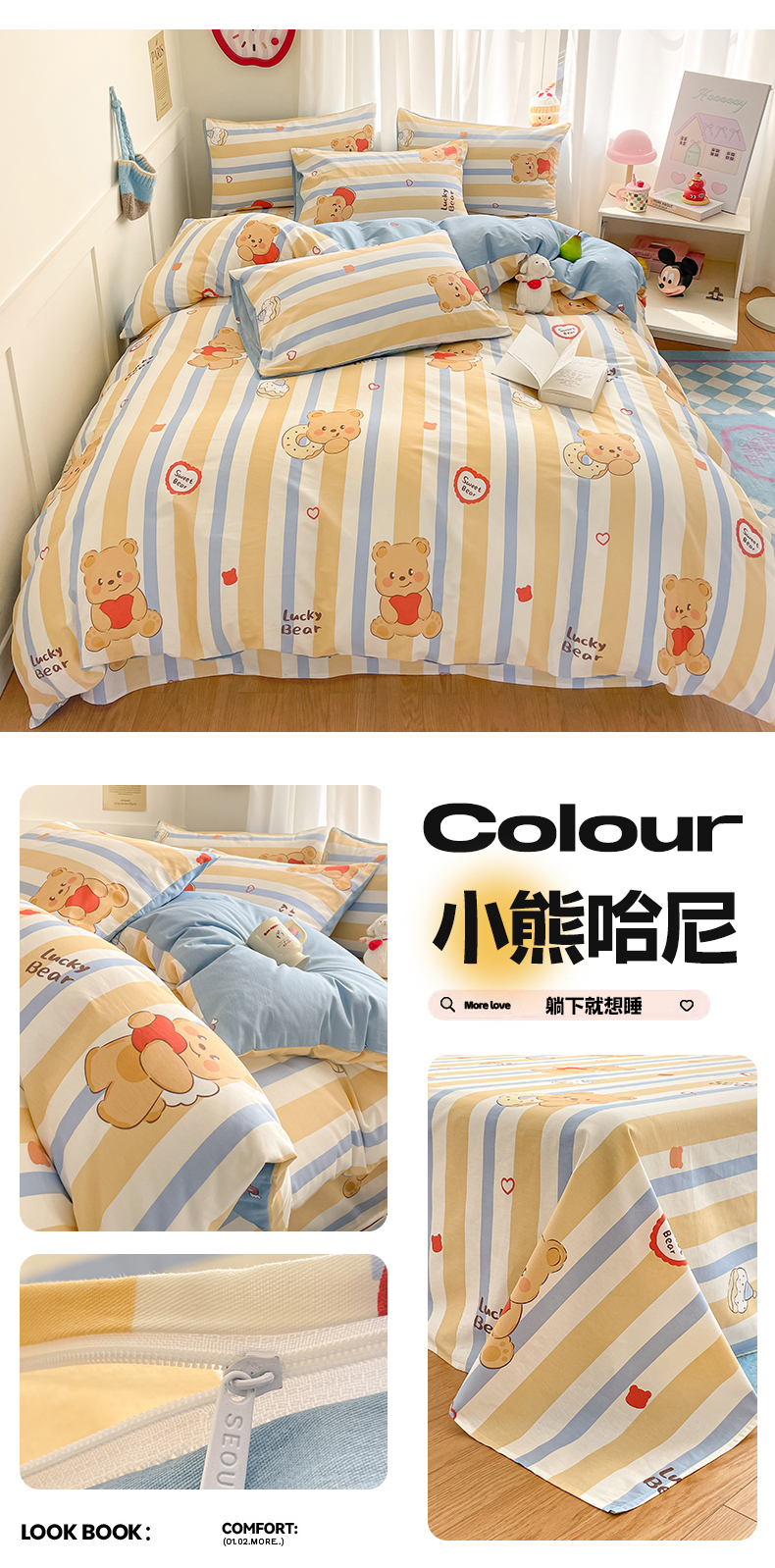 (总)首尔家纺 2026新款全棉纯棉小清新四件套,豹纹小熊,比格熊,波点蝴蝶结,丰收季节,果酱电台,蓝点豹纹,乐遥,玫瑰兔语,奶呼兔兔-米,盼夏少女,森遥,时尚恐龙,水墨嫣然,甜心可宠,香浮花月,小熊哈尼,芋泥小狗,月下小兔,中古小花熊
