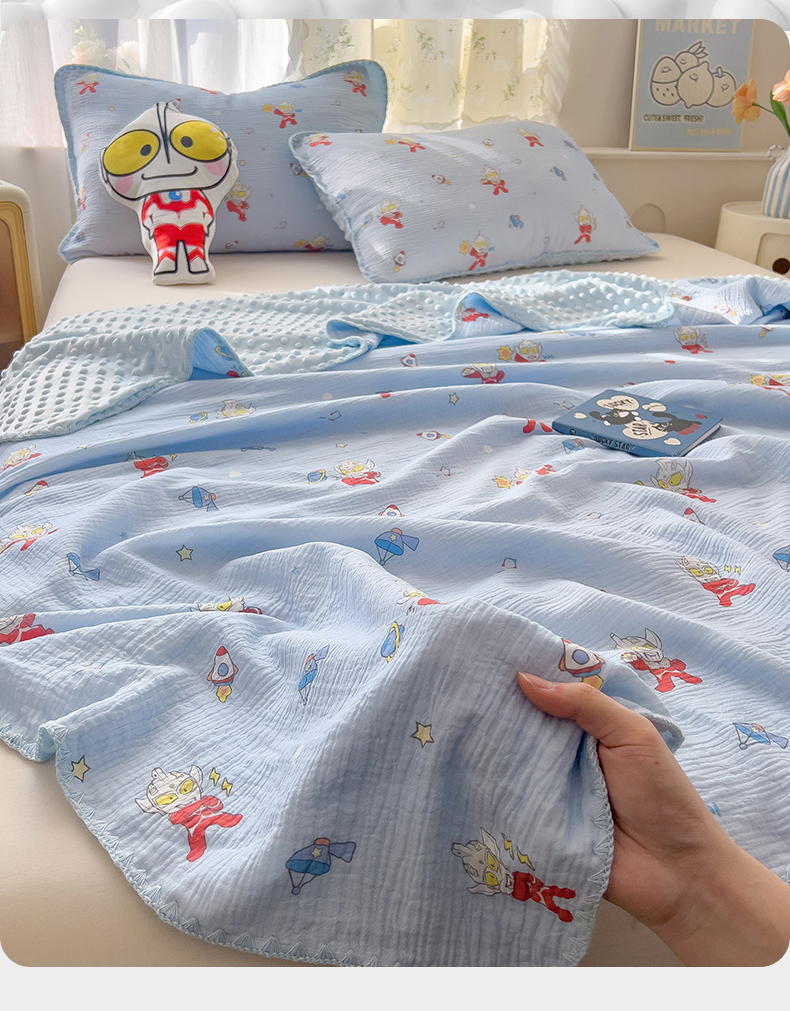 (总)兄弟坊 2026新款正版授权卡通全棉双层纱安抚被夏被纱布豆豆毯学校午睡被,正义奥特蓝,光耀奥特黄,酷酷奥特曼,热情海绵蓝,天真玉桂狗,甜甜凯蒂粉,无忧海绵黄,小小库洛米