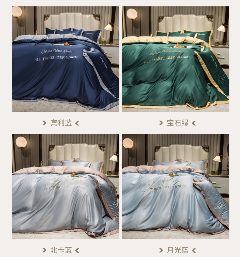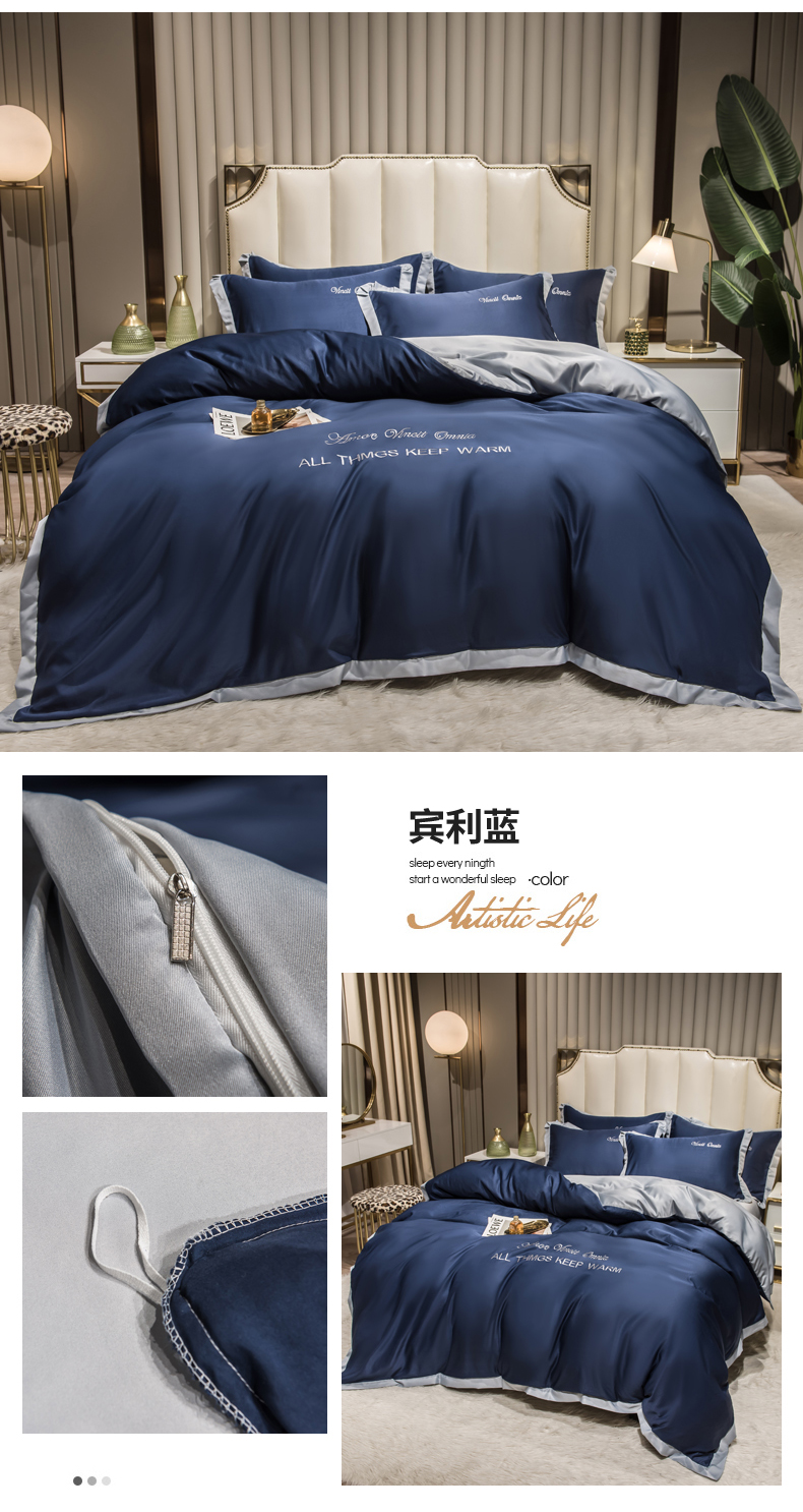 当前位置: 91家纺网 > 商品网购 > 床品套件 > 四件套 > 水洗真丝四件套 > 丝印良品 2026新款水洗真丝盛夏系列四件套单被套四件套 宾利蓝