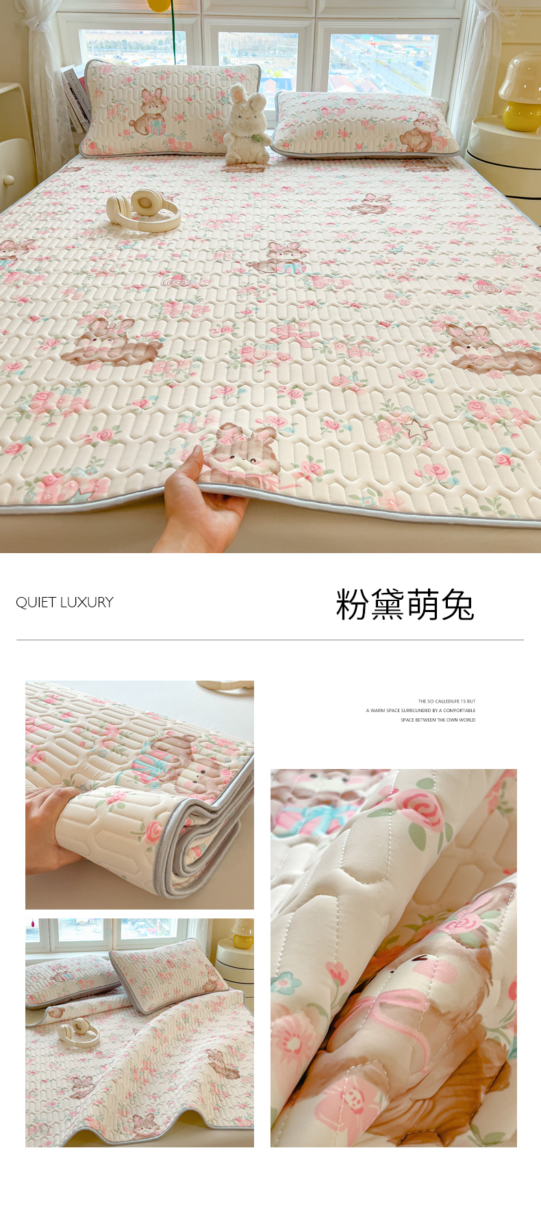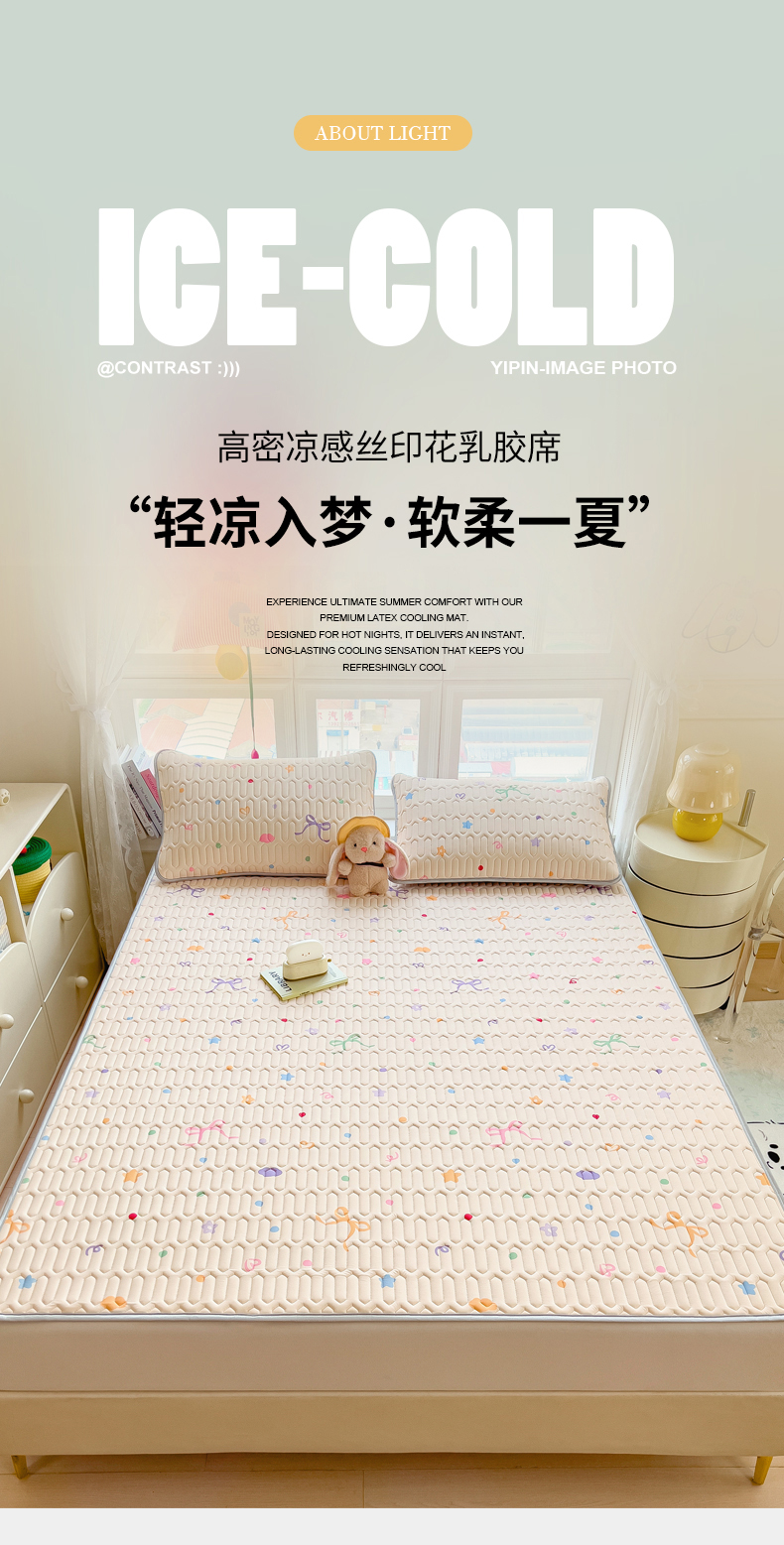 (总)丝羽坊 2026新款高密凉感丝印花乳胶凉席-平铺款,萌宠拼格,雾蓝花影,粉黛萌兔,格纹蝶影,奶白萌犬,浅蓝熊趣,糖果猫咪,彩糖点点,林间私语,爱的圈圈,爱心兔,薄荷甜心,冰蓝乐园,春意盎然,粉色蔷薇,花田小猫,灰格熊,咖色萌豚,奶绿汪仔,奶油猫咪,浅杏叶影,甜粉蝶梦,小白兔,小企鹅,小兔派对,星月,熊猫宝宝,熊猫绿,郁金香紫,云朵猫咪