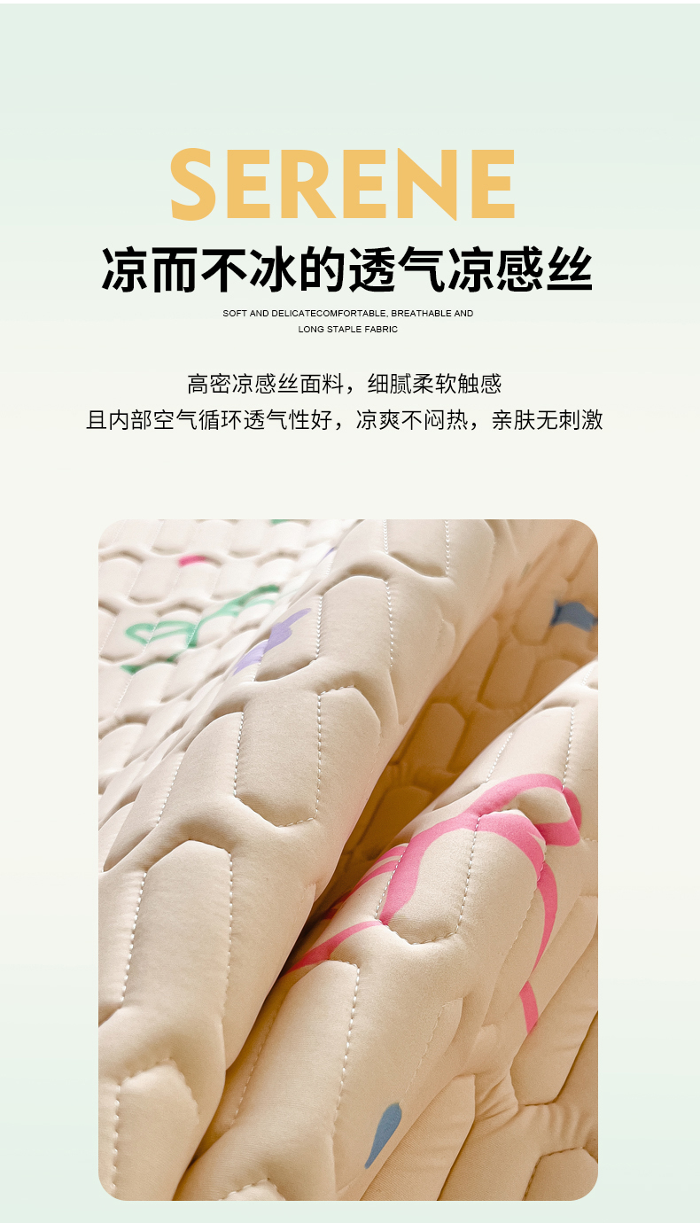 商品名称:丝羽坊 2026新款高密凉感丝印花乳胶凉席-平铺款 彩糖点点