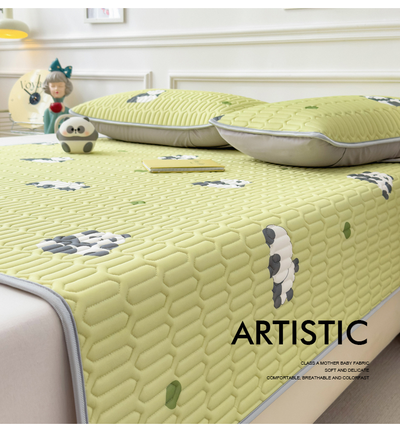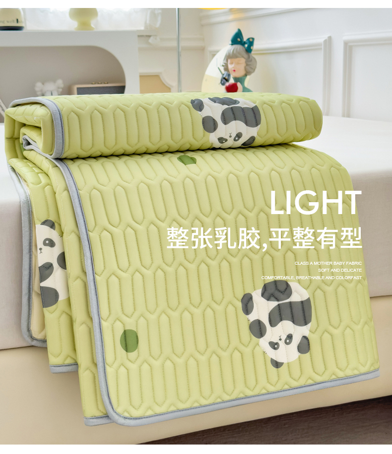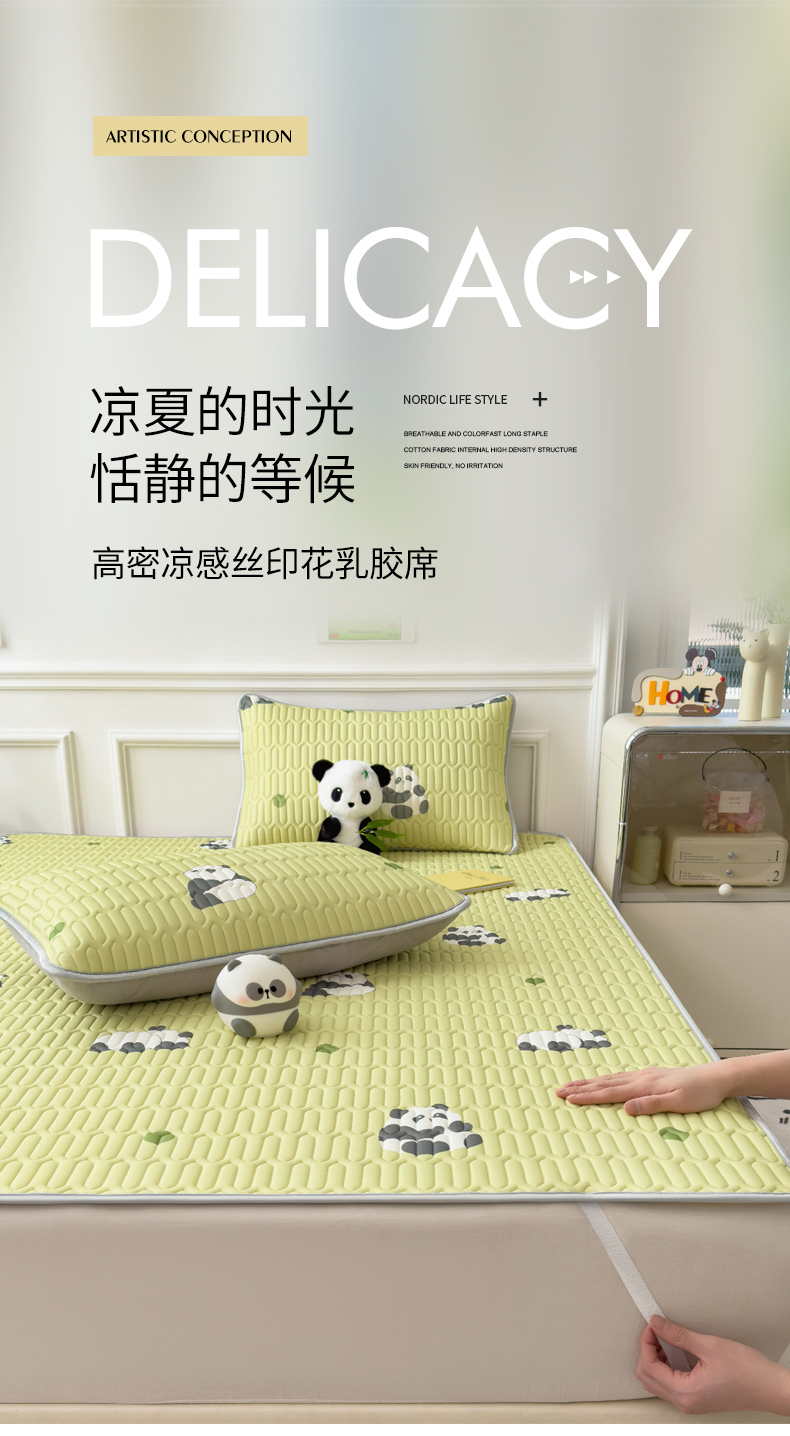 商品名称:丝羽坊 2026新款高密凉感丝印花乳胶凉席-平铺款 熊猫绿