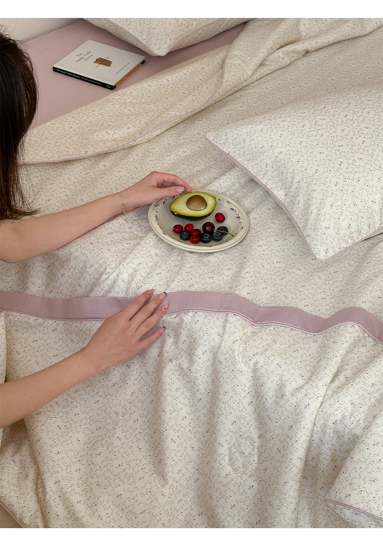 • 91家纺网 家纺一手货源 找家纺 一加一 2026新款活性印花透气工艺大豆夏被夏凉被空调被四件套-棉花叙 花间蜓