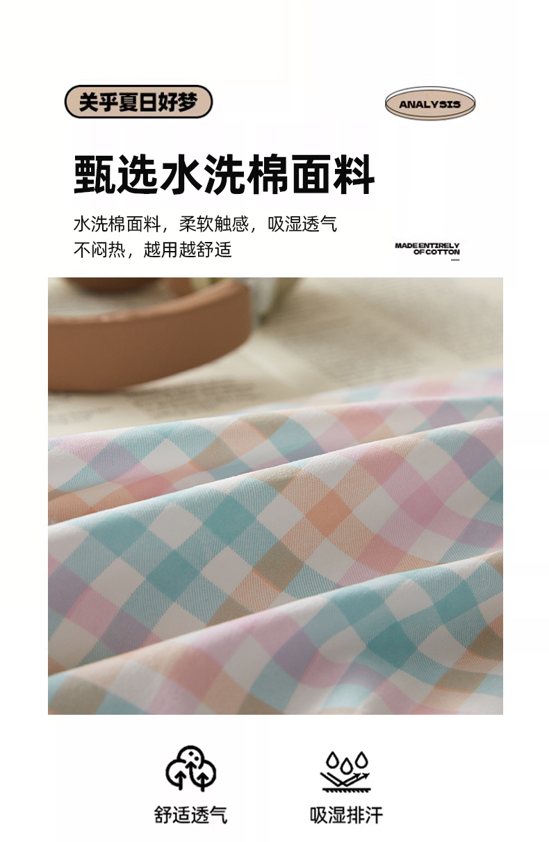 商品名称:(总)帕芬鸟家纺 2026新款100%棉花夏凉被空调被夏被四件套-格子系列