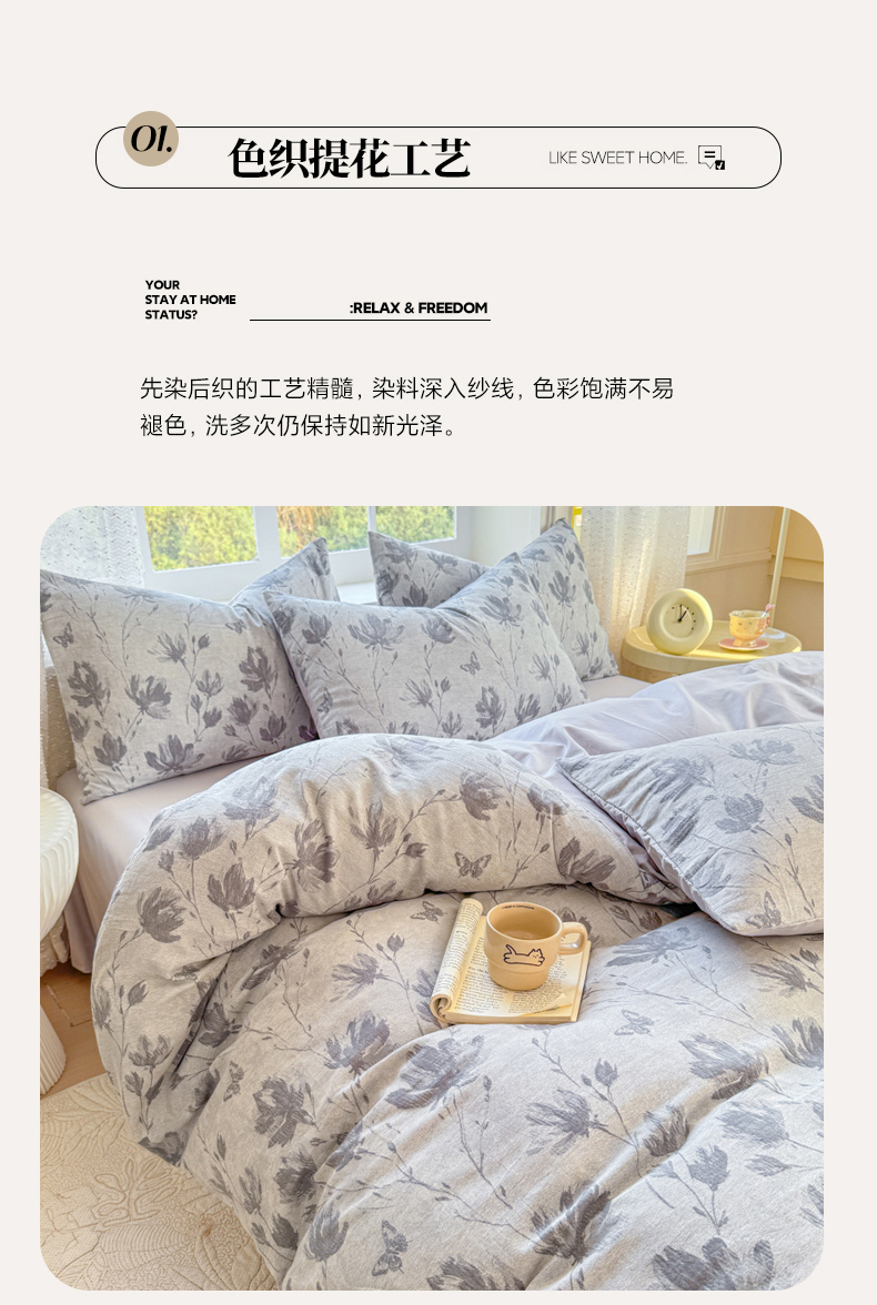 当前位置: 91家纺网 > 商品网购 > 床品套件 > 四件套 > 全棉普通四件套 > 疆东 疆东2026新款60支A类全棉长绒棉纯棉色织大提花四件套水洗全棉纯棉厚织色织提花肌理被套四件套单品 绿萝灰