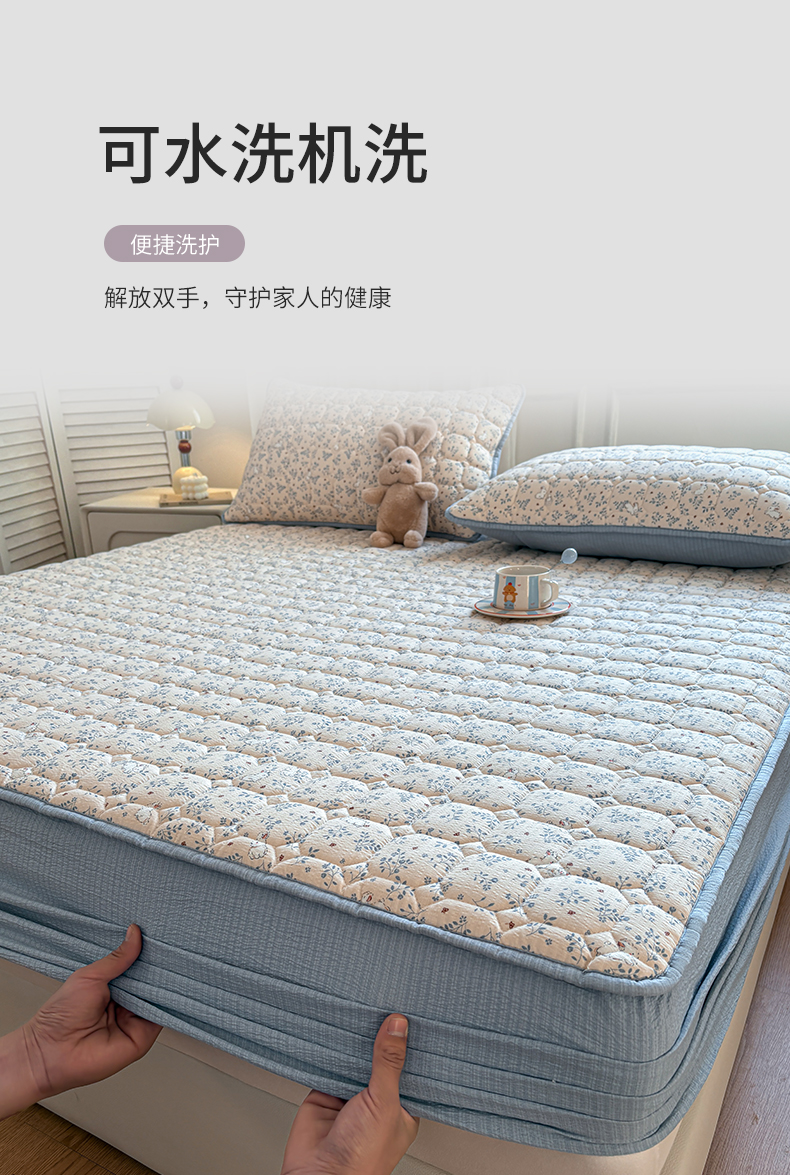(总)居眠 2025新款防水夹棉床笠-清雅,清雅-粉色,清雅-灰色,清雅-卡其,清雅-绿色,清雅-米白,清雅-深蓝