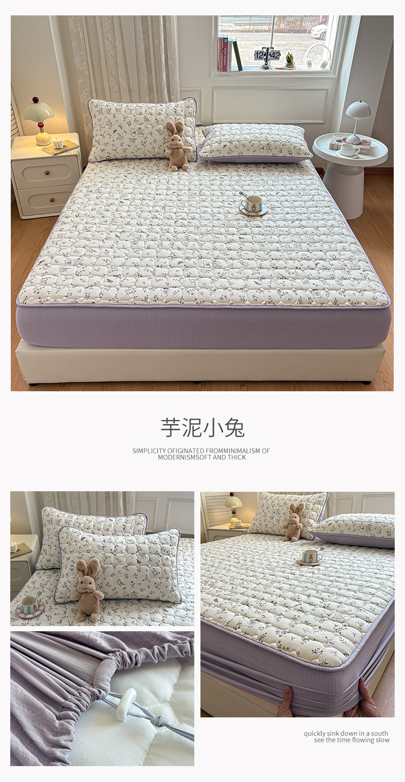 (总)居眠 2025新款A类水洗棉印花夹棉床笠,爱心小熊,波点南瓜,搞怪派对,花园小熊,快乐小汪,萌宠小兔,奇幻兔兔,情系花兔,郁金香紫,字母小狗