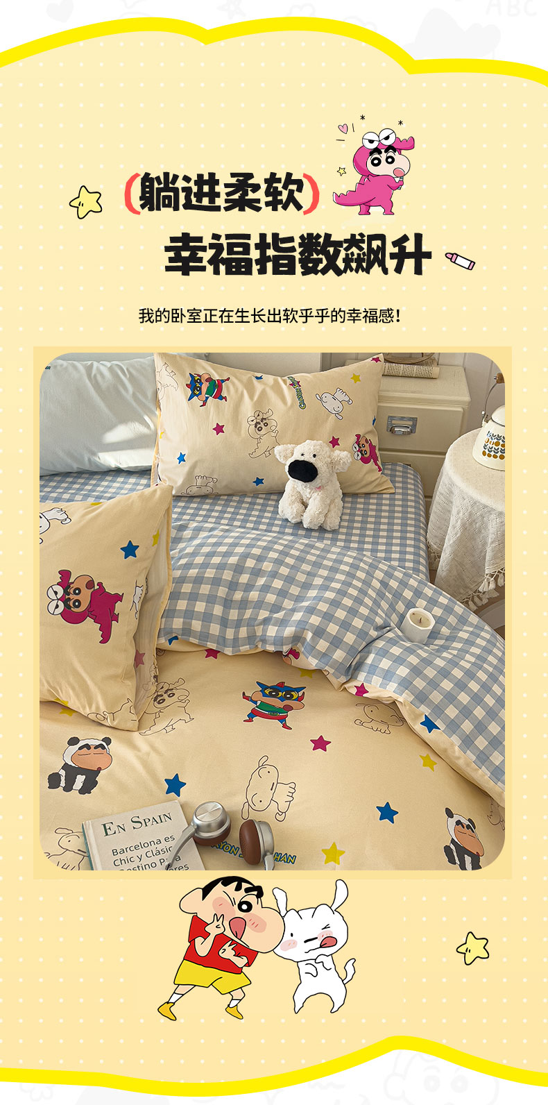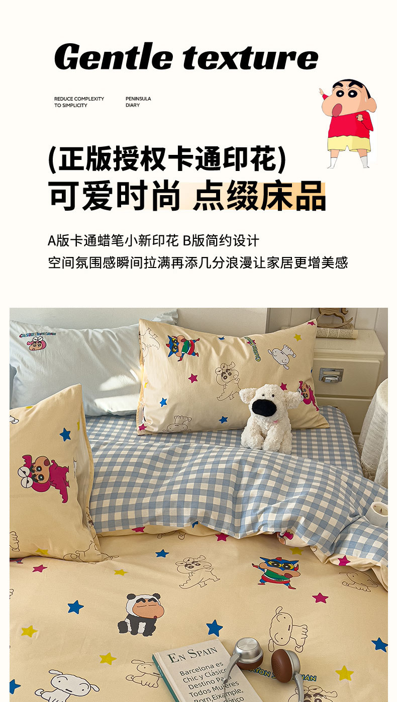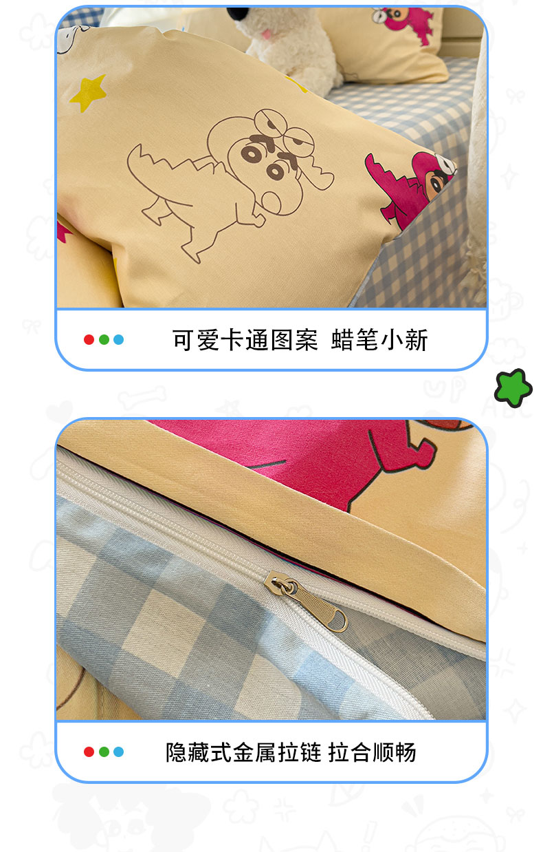 当前位置: 91家纺网 > 商品网购 > 床品套件 > 四件套 > 其它四件套 > 桃子家居 2026新款A类蜡笔小新正版授权刺绣混搭枕套卡通印花系列四件套 棉蜡笔小新-百变小新