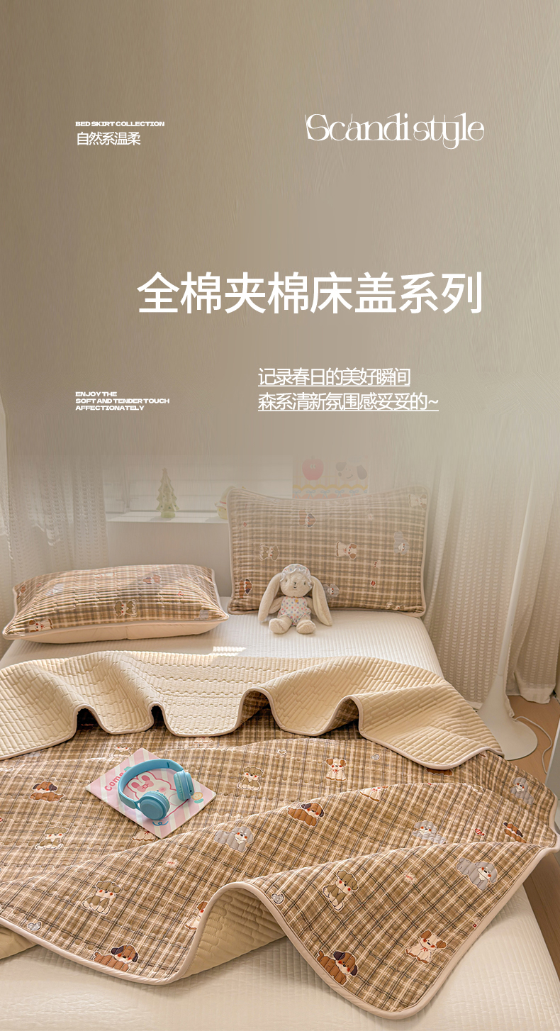 (总)雅萱家纺 2026新款森系全棉夹棉印花床盖,豹纹小狗,橙意满满,蛋糕熊仔,动物园,格纹萌犬,花丛小熊,简约时代,焦糖腊肠犬,咖啡小熊,洛克花园,墨兰樱桃,奶油兔叽,色块絮语,绅士狗,松鼠乐园,桃气修狗,兔彼得,夏日小黄花,仙草兔,心意满满,星星小象,樱桃小狗,郁金香狗