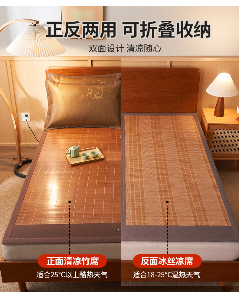 • 91家纺网 家纺一手货源 找家纺 鑫琪莱家纺 2025新款双面竹席冰丝席竹凉席学生宿舍席子 诗礼-花漾