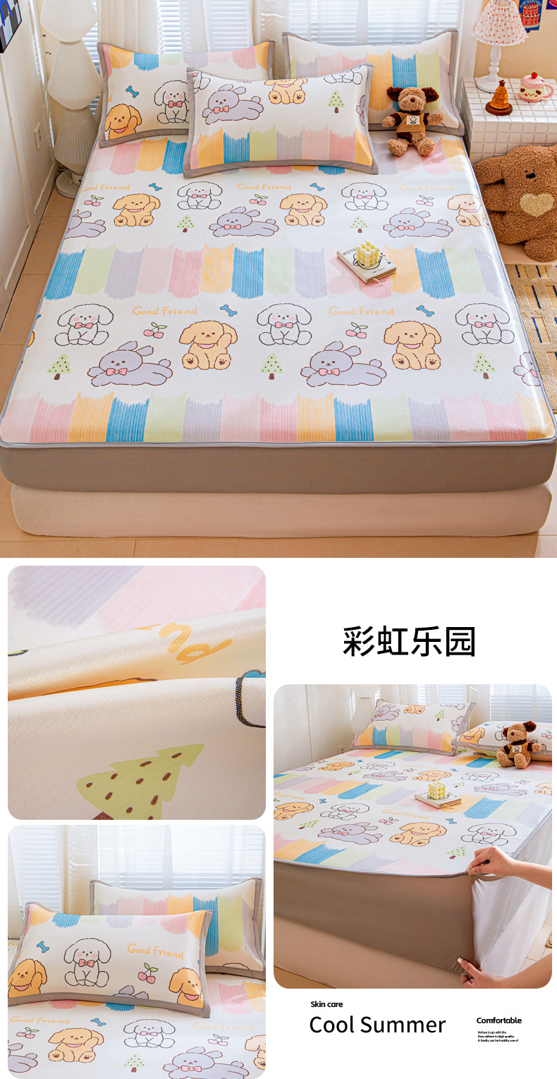 (总)富馨莱 2026新款冰丝凉席平铺款支持一件定制定做,LOVI心,冰川蓝,冰淇淋兔,饼干熊,彩虹乐园,彩虹云朵,彩色烟花,淡雅粉,快乐熊猫,凉感灰,蜜桃兔,清新绿,晚安小熊,星空小马,星星小马-白,星星小马-粉,组合图仅供展示不可下单