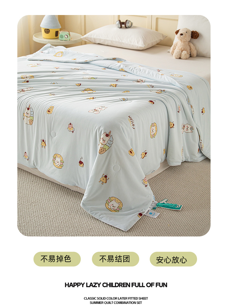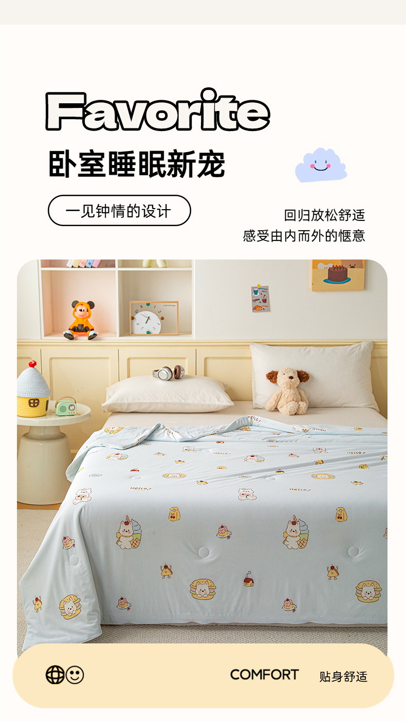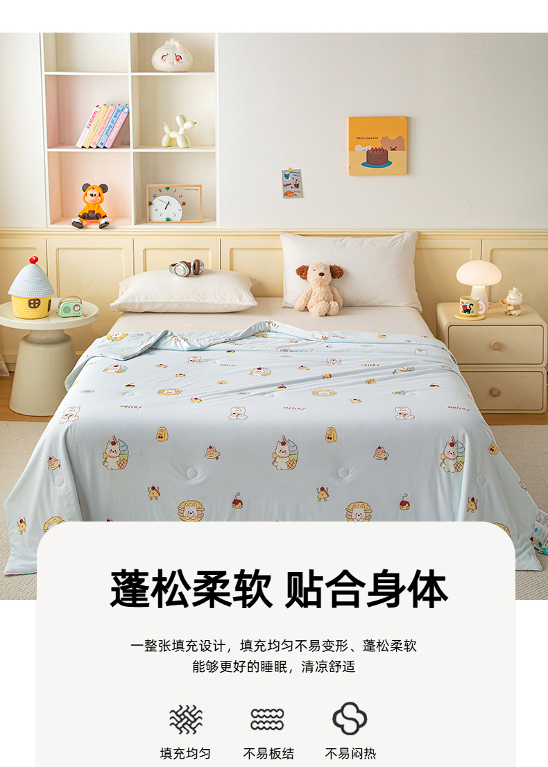 (总)亿莱鑫 2026春夏新款卡通印花仿锦氨夏被夏凉被空调被,彩绘小熊,格纹小象,蘑菇熊屋,树屋熊趣,甜品聚会,星梦萌友,星星小象,熊仔面包店