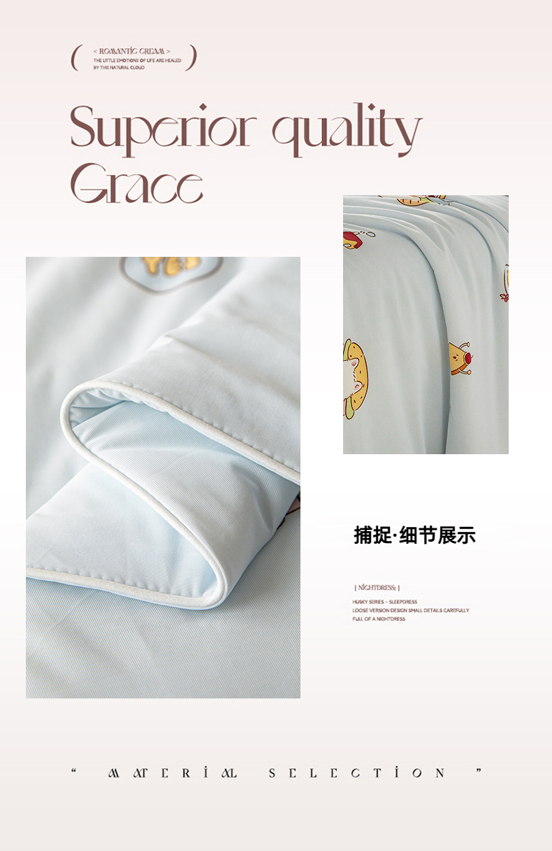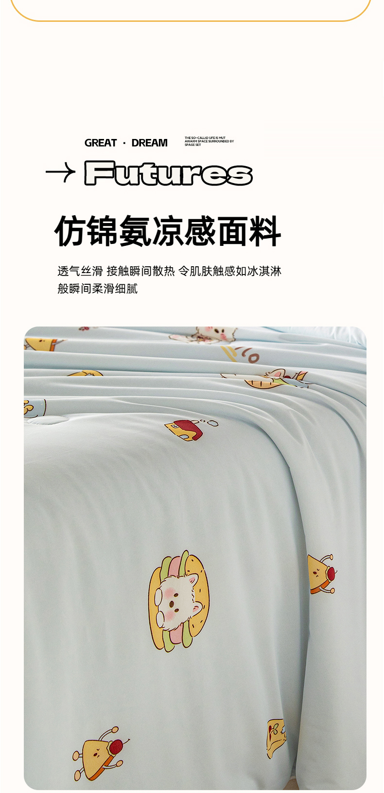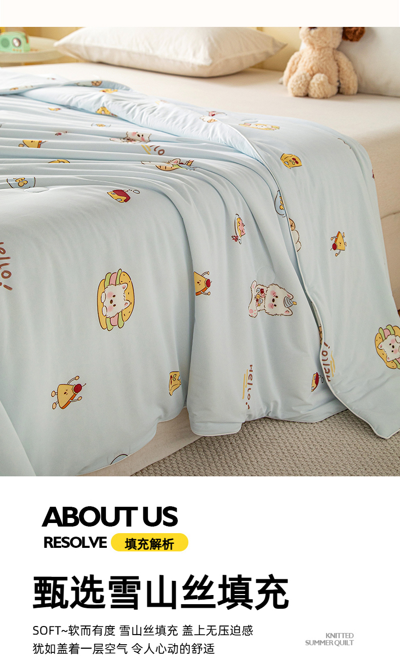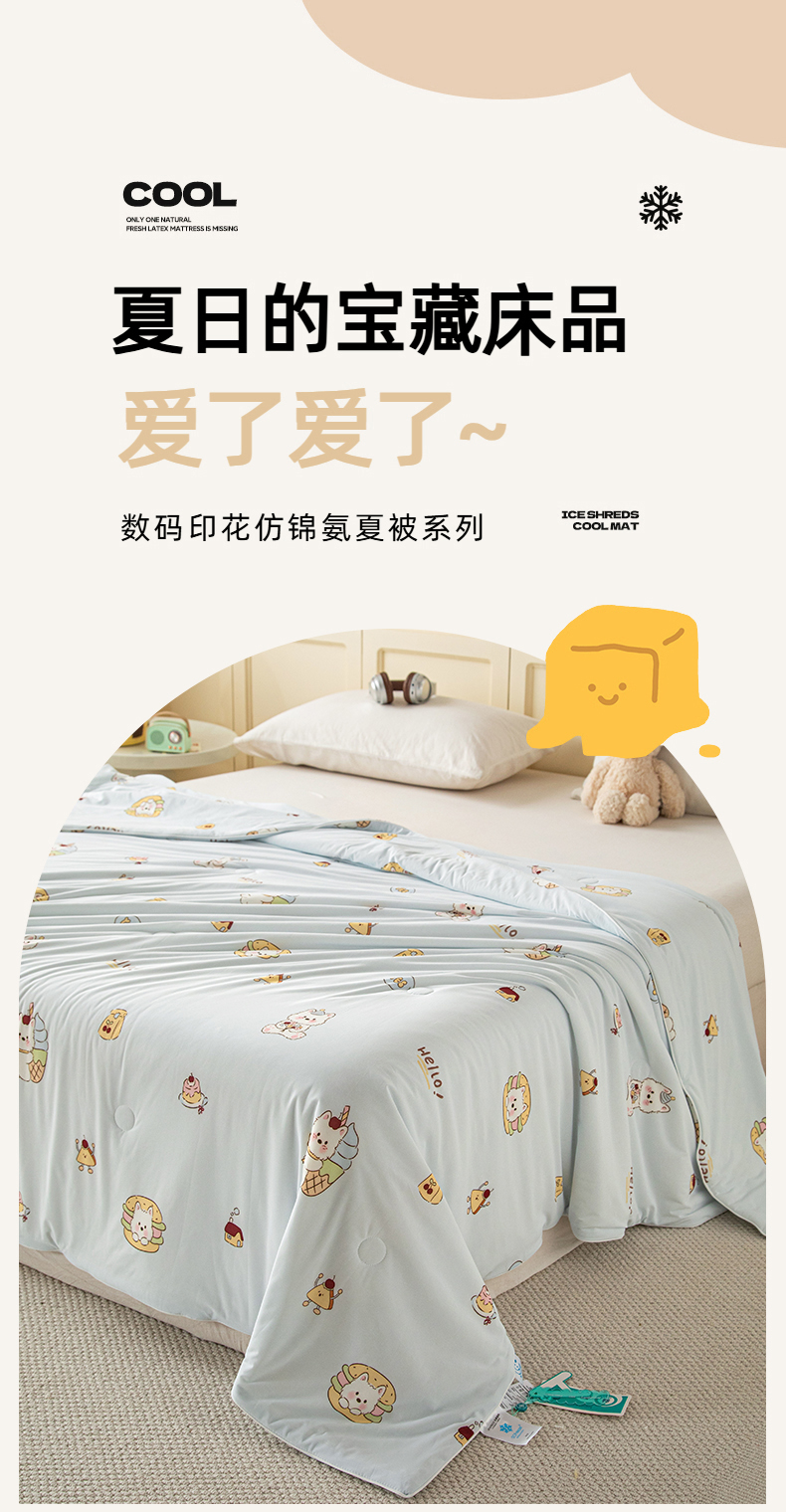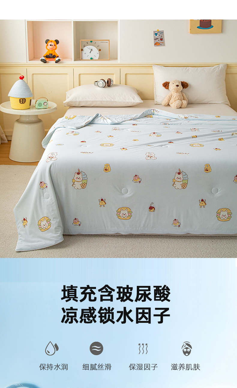 商品名称:亿莱鑫 2026春夏新款数码印花仿锦氨夏被夏凉被空调被 萌兔茶点