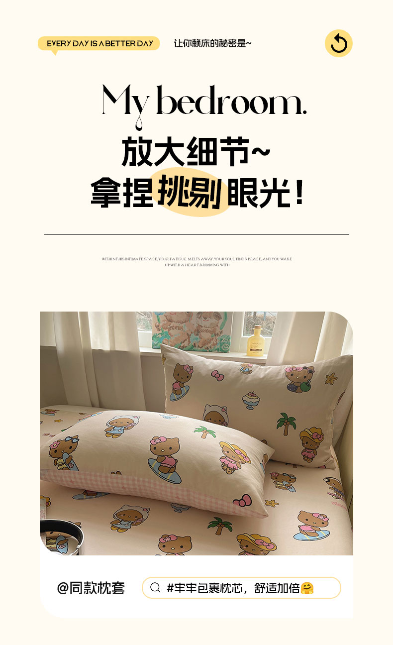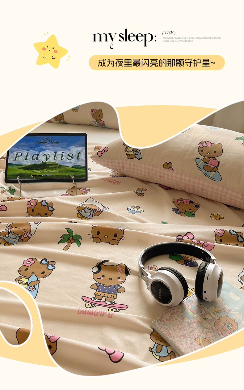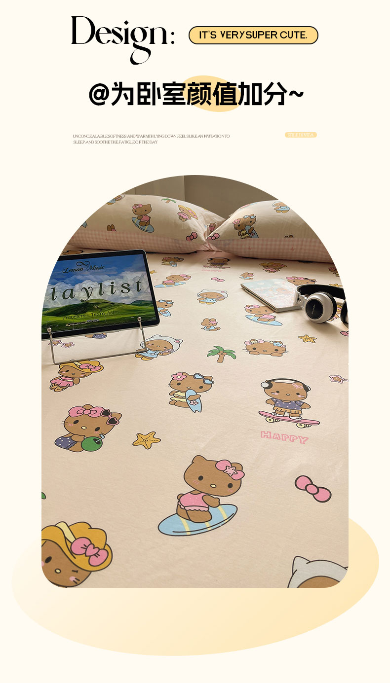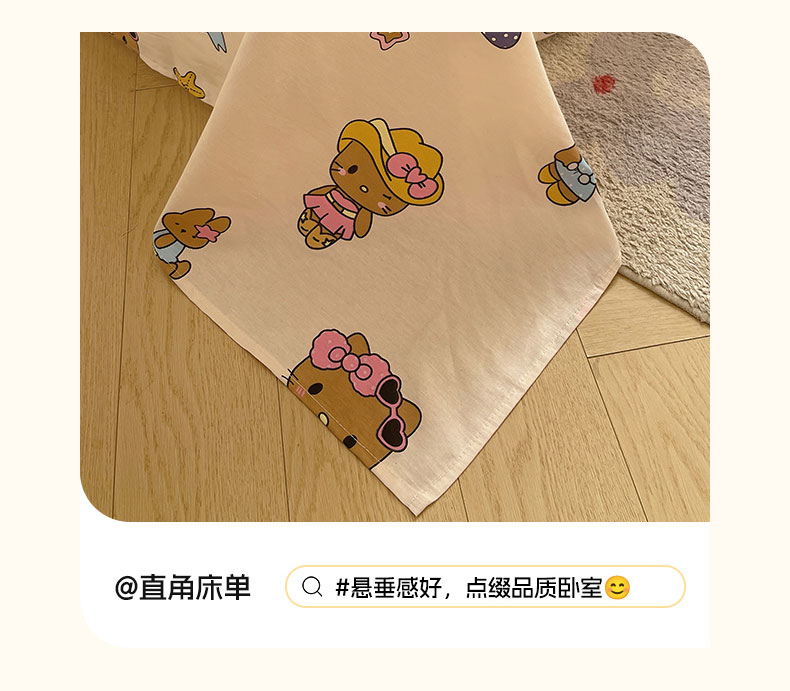 六巷胡同 2026新款40支全棉13070INS卡通全棉单品床单 度假冲浪猫