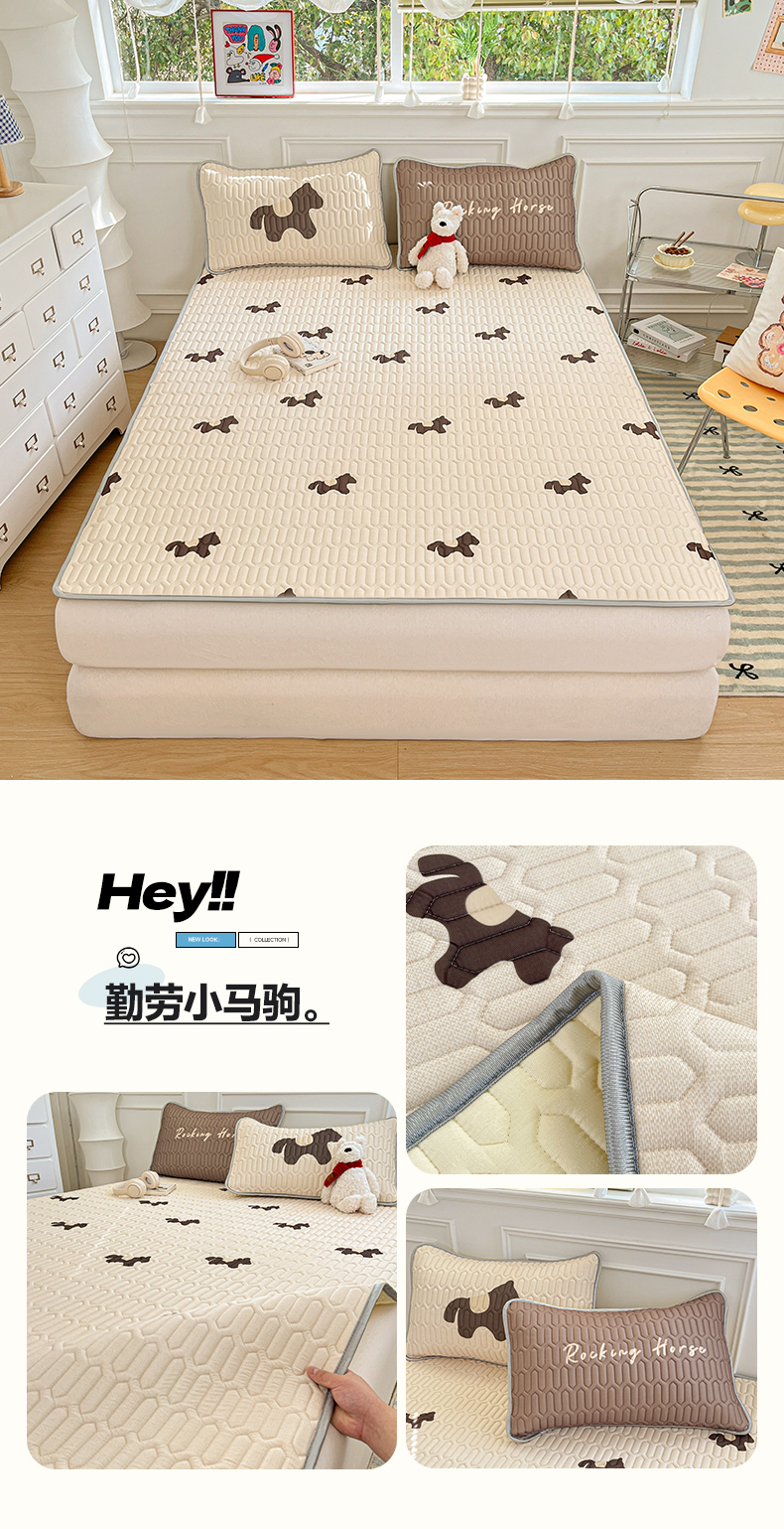 (总)摩妮卡 2026新款水洗棉夹棉防水刺绣爱心床褥床垫款三件套,爱心-奶白,爱心-撑粉,爱心-卡其,爱心-天蓝