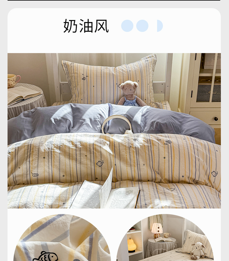 (总)禧缘家纺(原梦想家) 2026新款小清新皱皱纱木棉床裙式床笠印花单被套,彩虹,蝶梦,花田,沐春,南瓜,泡芙,甜筒,童话,兔兔,雾迟,星星,月光