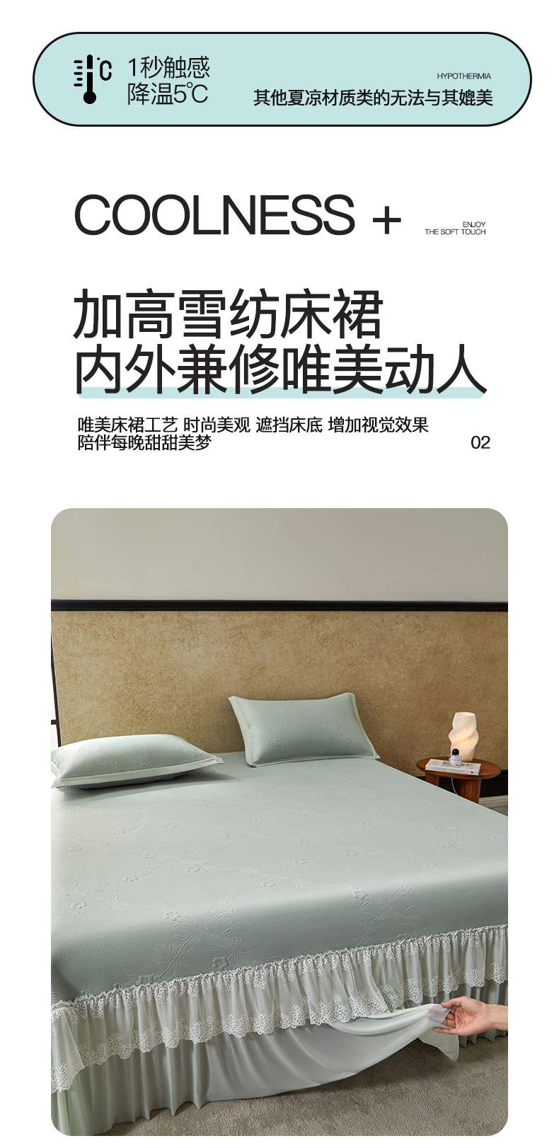 (总)航途席业 2026新款A类凉感豆豆床裙款凉席三件套-系列三,冰蓝浪影,奶白浪影,浅粉浪影,青柠浪影,柔粉浪影,雾灰浪影