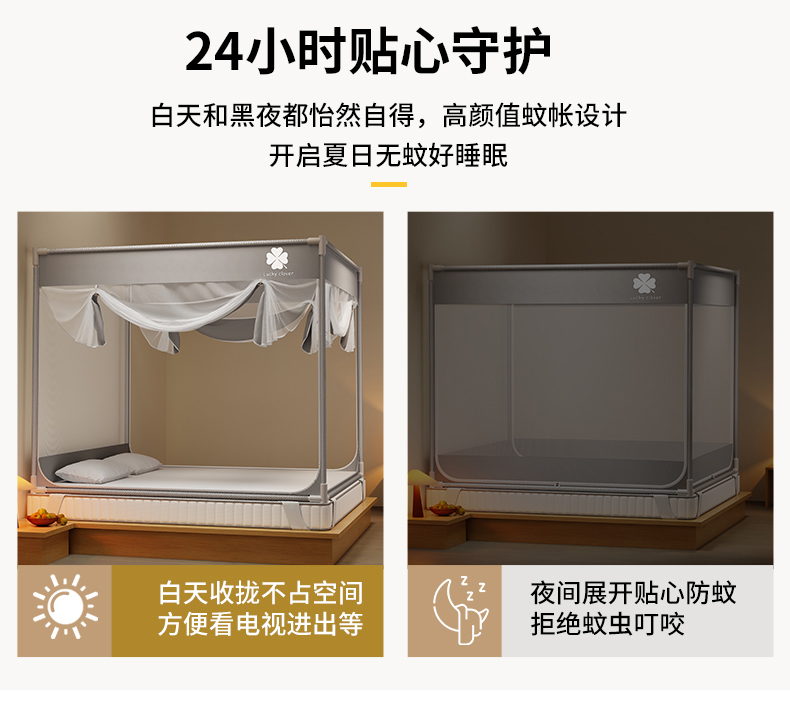(总)壹和 2026新款坐床蚊帐外穿杆全底-有收纳袋-防摔蚊帐-自连接烤漆支架,灰-字母,灰色-四叶草,蓝-字母,蓝色-帕恰狗,绿-字母,绿色-熊猫,米-字母,米色-太阳
