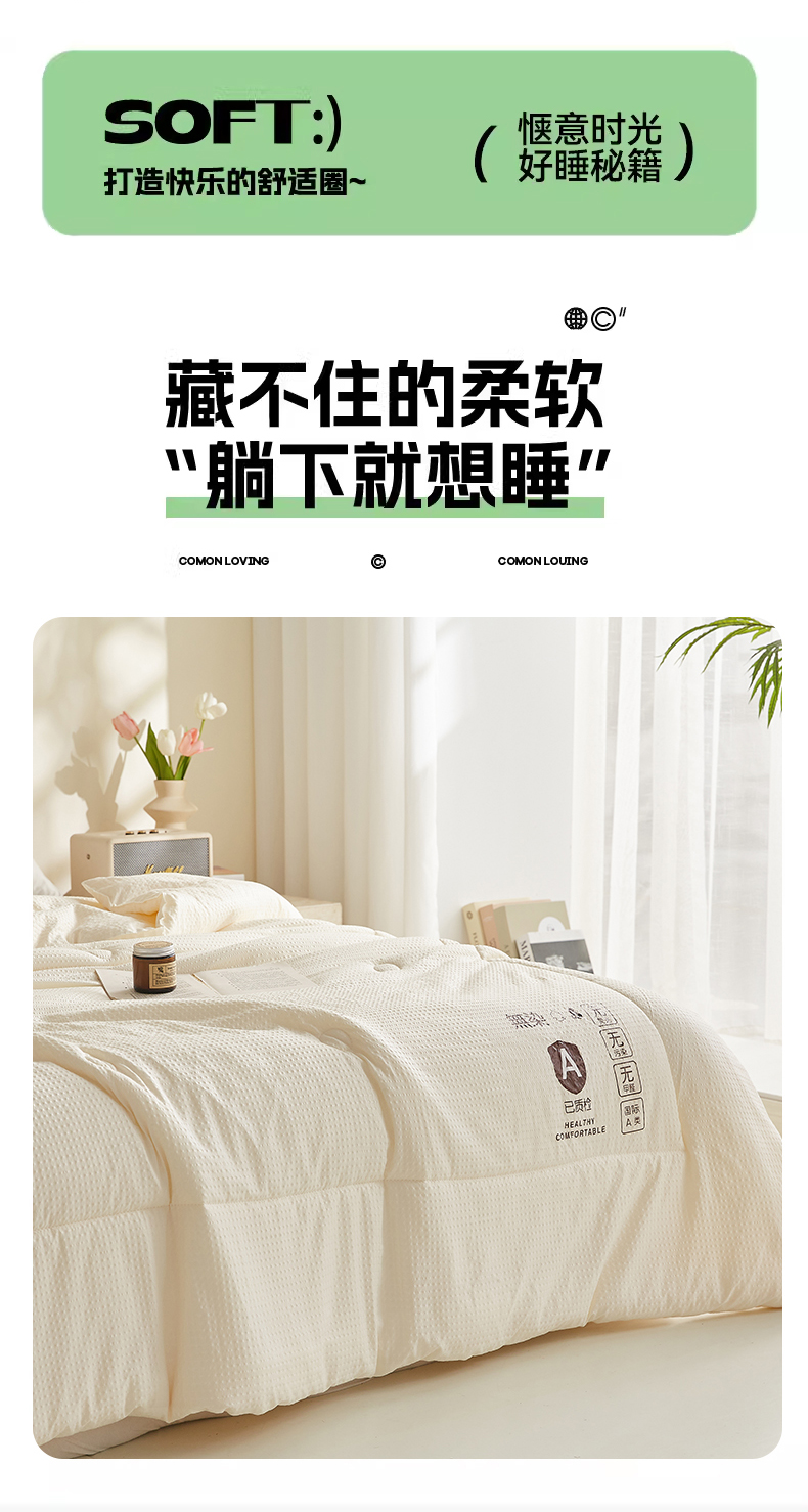 (总)帕芬鸟家纺 2025新款超柔水洗棉大豆被子被芯,米白拼绿,灰色,米白色,玉色,咖色