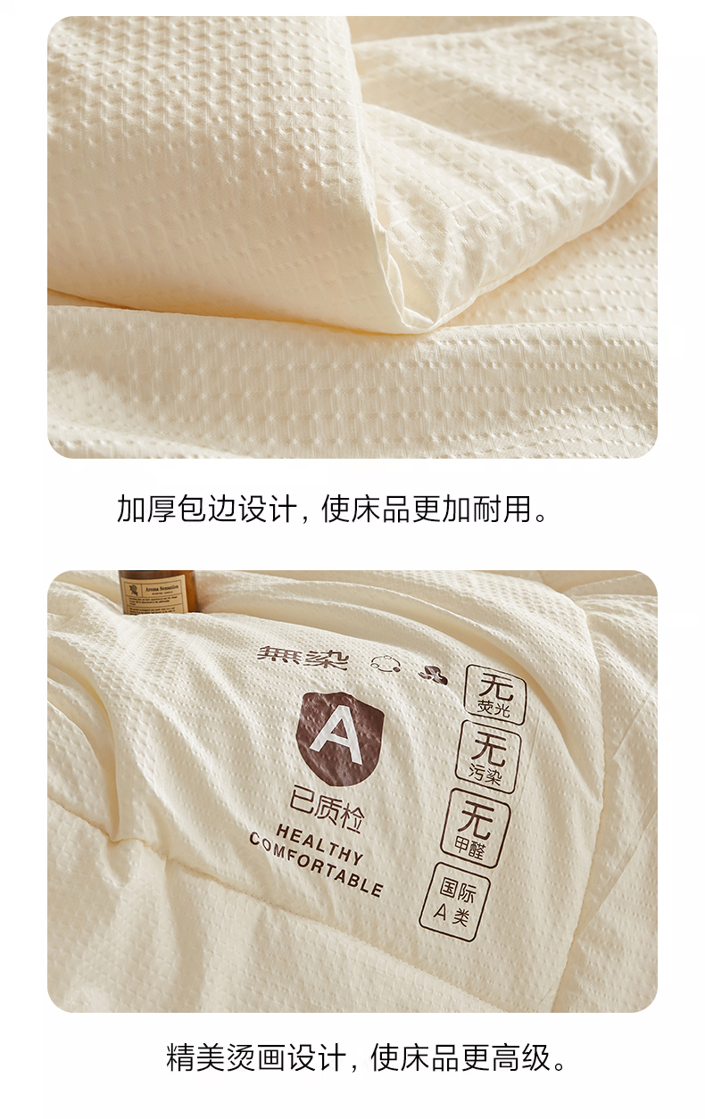 [{"sp_id":1,"sp_name":"\u989c\u8272","sp_format":2,"sp_list":[{"sp_value_id":647,"sp_value_name":"\u65e0\u67d3-\u7c73\u767d","sp_value_image":{"id":999,"path":"https:\/\/img3.91jf.com\/ghelp\/2026\/20260319\/20260319113247_235848.jpeg"},"sp_value_video":{"id":0,"img":"","path":"","time":0,"download_num":0,"play_num":0},"price":"19.00","storage":2000,"weight":"1.200","is_check_weight":0,"plus_price":"","sp_sort":14}]},{"sp_id":27,"sp_name":"\u5c3a\u5bf8","sp_format":1,"sp_list":[{"sp_value_id":302,"sp_value_name":"110x150cm\u5355\u590f\u88ab","sp_value_image":{"id":0,"path":""},"sp_value_video":{"id":0,"img":"","path":"","time":0,"download_num":0,"play_num":0},"price":"19.00","storage":500,"weight":"1.200","is_check_weight":0,"plus_price":"","sp_sort":5},{"sp_value_id":303,"sp_value_name":"150x200cm\u5355\u590f\u88ab","sp_value_image":{"id":0,"path":""},"sp_value_video":{"id":0,"img":"","path":"","time":0,"download_num":0,"play_num":0},"price":"30.00","storage":500,"weight":"1.200","is_check_weight":0,"plus_price":"","sp_sort":6},{"sp_value_id":304,"sp_value_name":"180x220cm\u5355\u590f\u88ab","sp_value_image":{"id":0,"path":""},"sp_value_video":{"id":0,"img":"","path":"","time":0,"download_num":0,"play_num":0},"price":"33.00","storage":500,"weight":"1.200","is_check_weight":0,"plus_price":"","sp_sort":7},{"sp_value_id":305,"sp_value_name":"200x230cm\u5355\u590f\u88ab","sp_value_image":{"id":0,"path":""},"sp_value_video":{"id":0,"img":"","path":"","time":0,"download_num":0,"play_num":0},"price":"35.00","storage":500,"weight":"1.200","is_check_weight":0,"plus_price":"","sp_sort":8}]}]