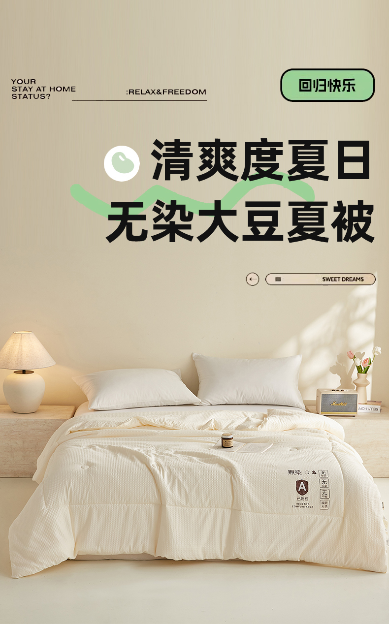 帕芬鸟家纺 2026春夏新款A+无染大豆夏被夏凉被空调被 无染-米白