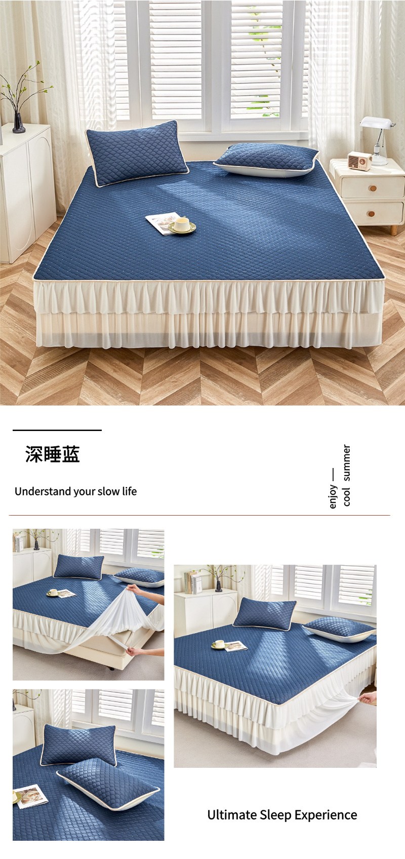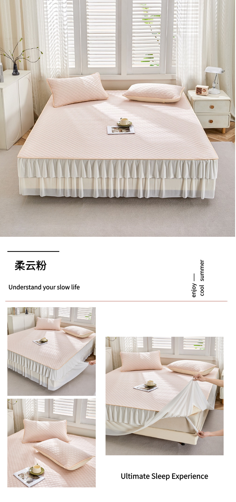 (总)羽梦家纺 2026新款冰柔丝乳胶床裙款凉席,青雾花影,云间花境,云端兔语,青空花信,柔云粉,淡蓝色,深睡蓝,青空灰