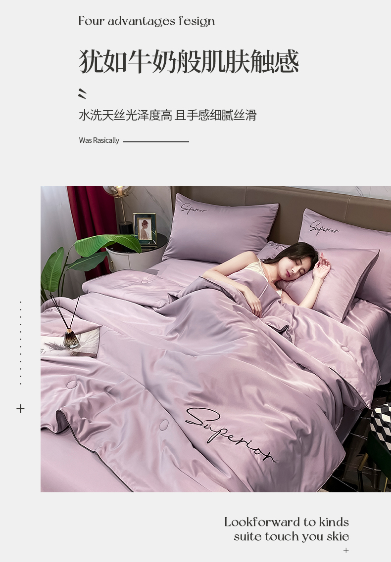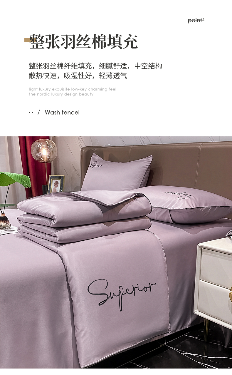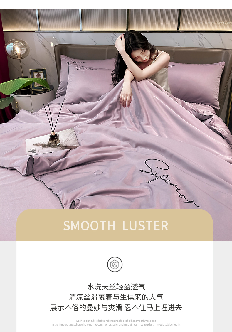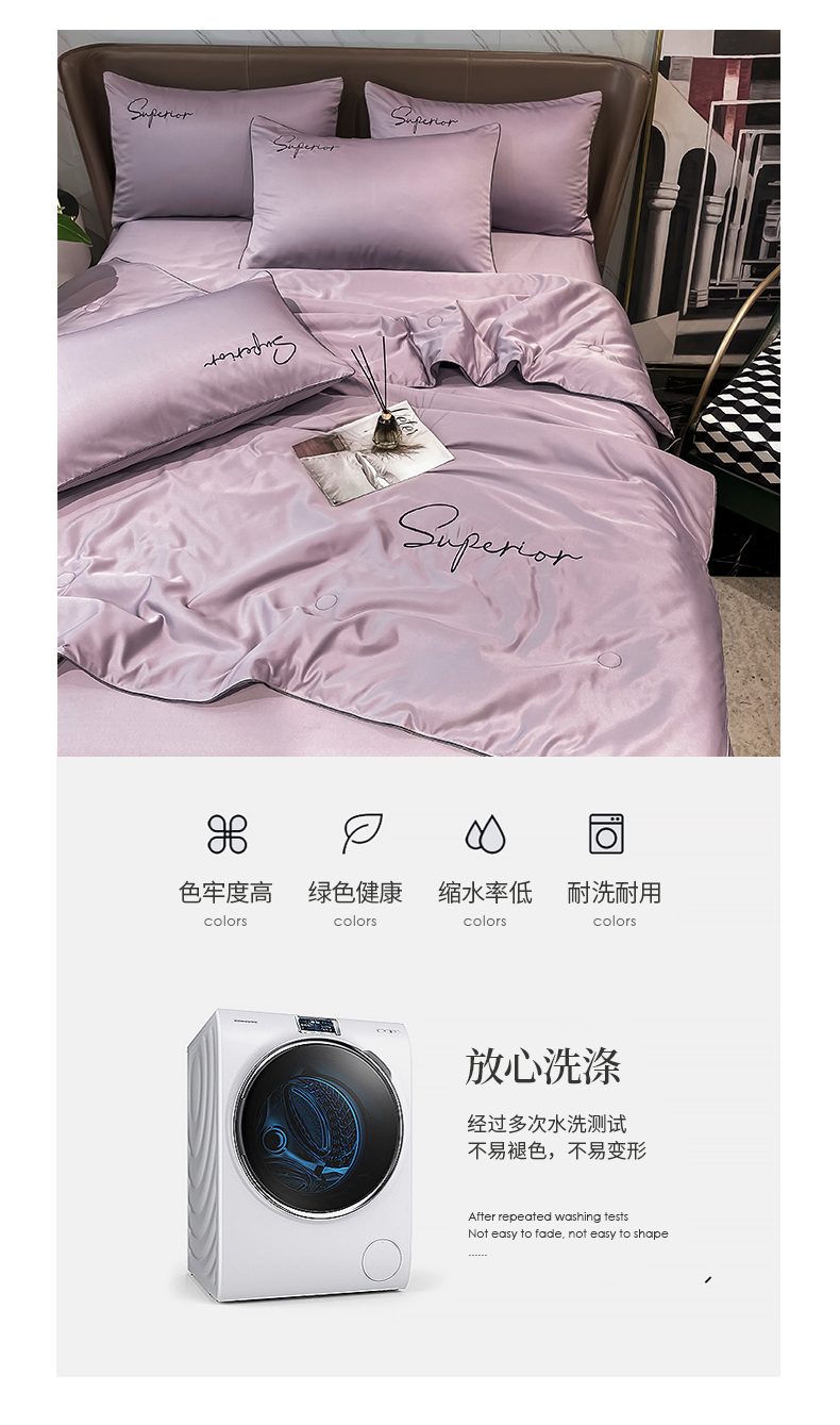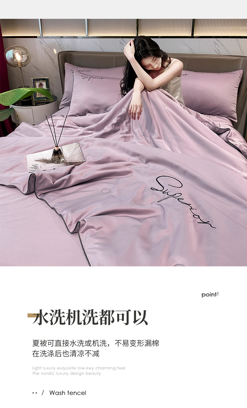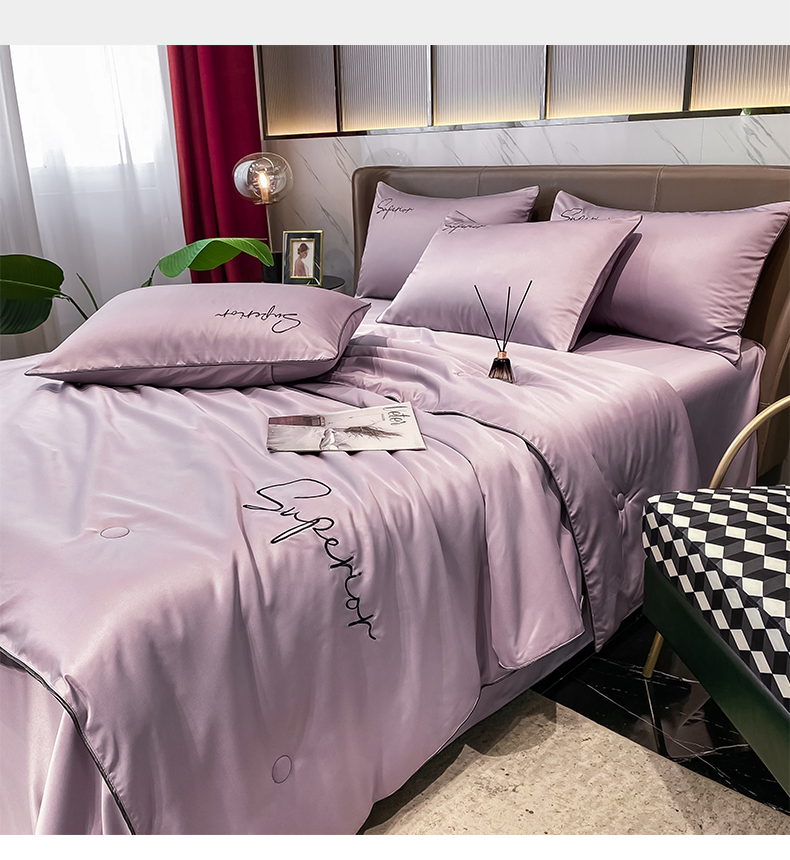 • 91家纺网 家纺一手货源 找家纺 绒城 2026新款字母刺绣水洗天丝夏被夏凉被空调被四件套-字母 字母烟熏紫
