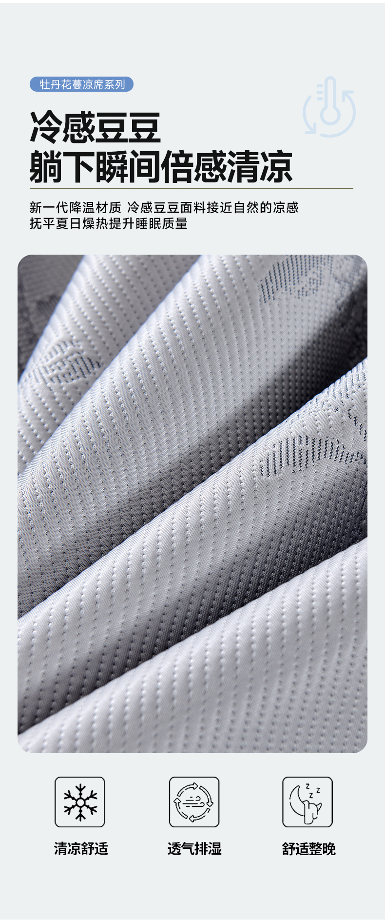 (总)小牛席业 2026新款PE凉感轻奢赫本提花冰丝席凉席席子,粉色,灰色,蓝色,抹茶,香槟