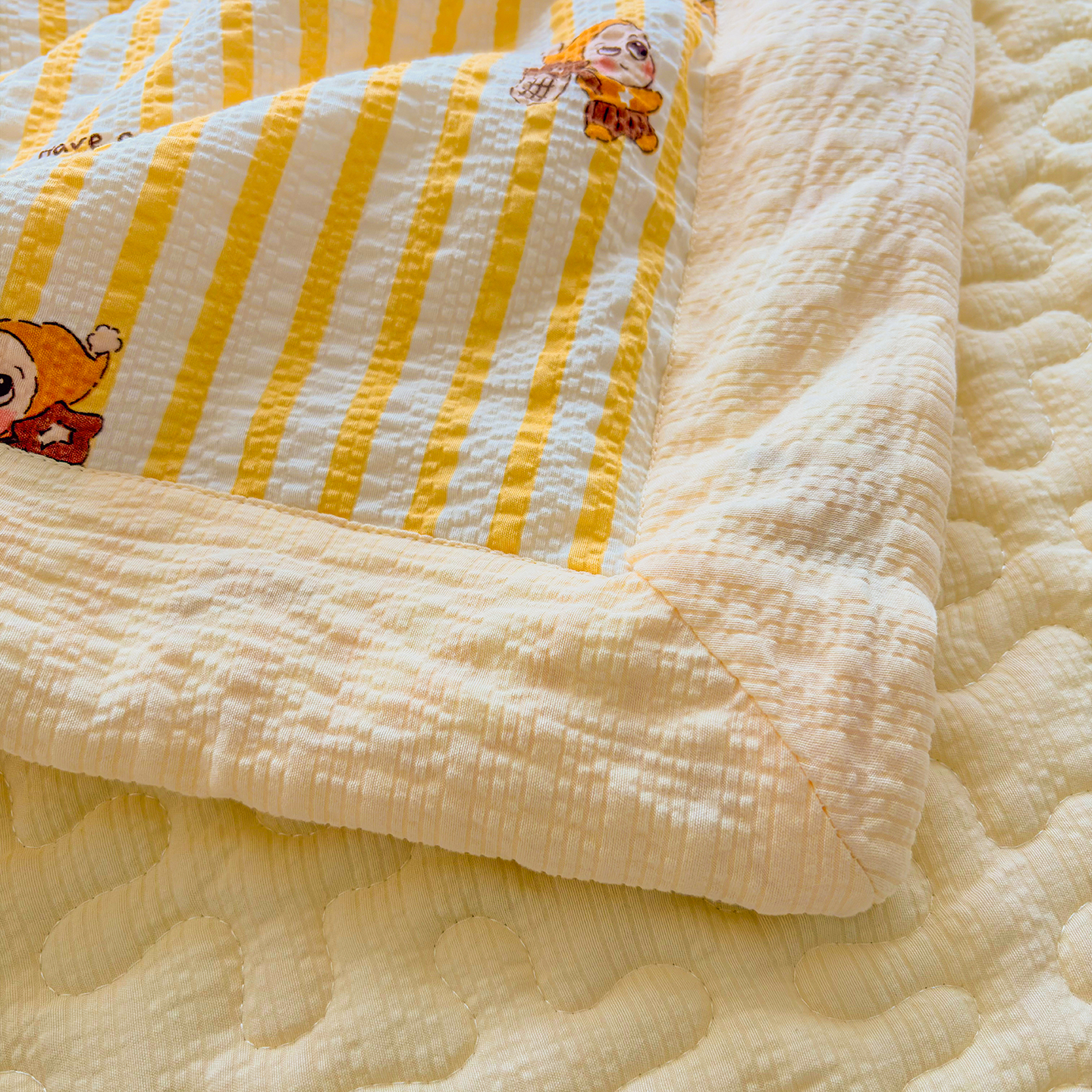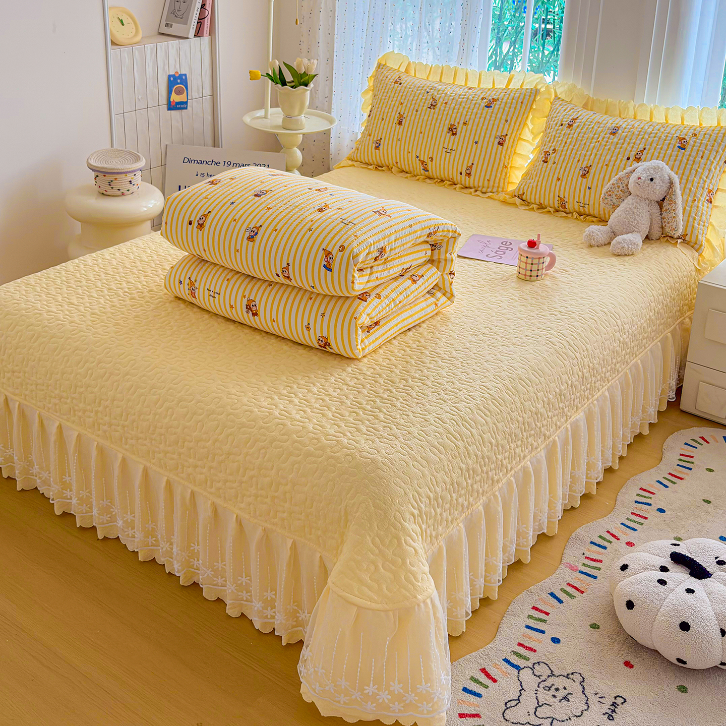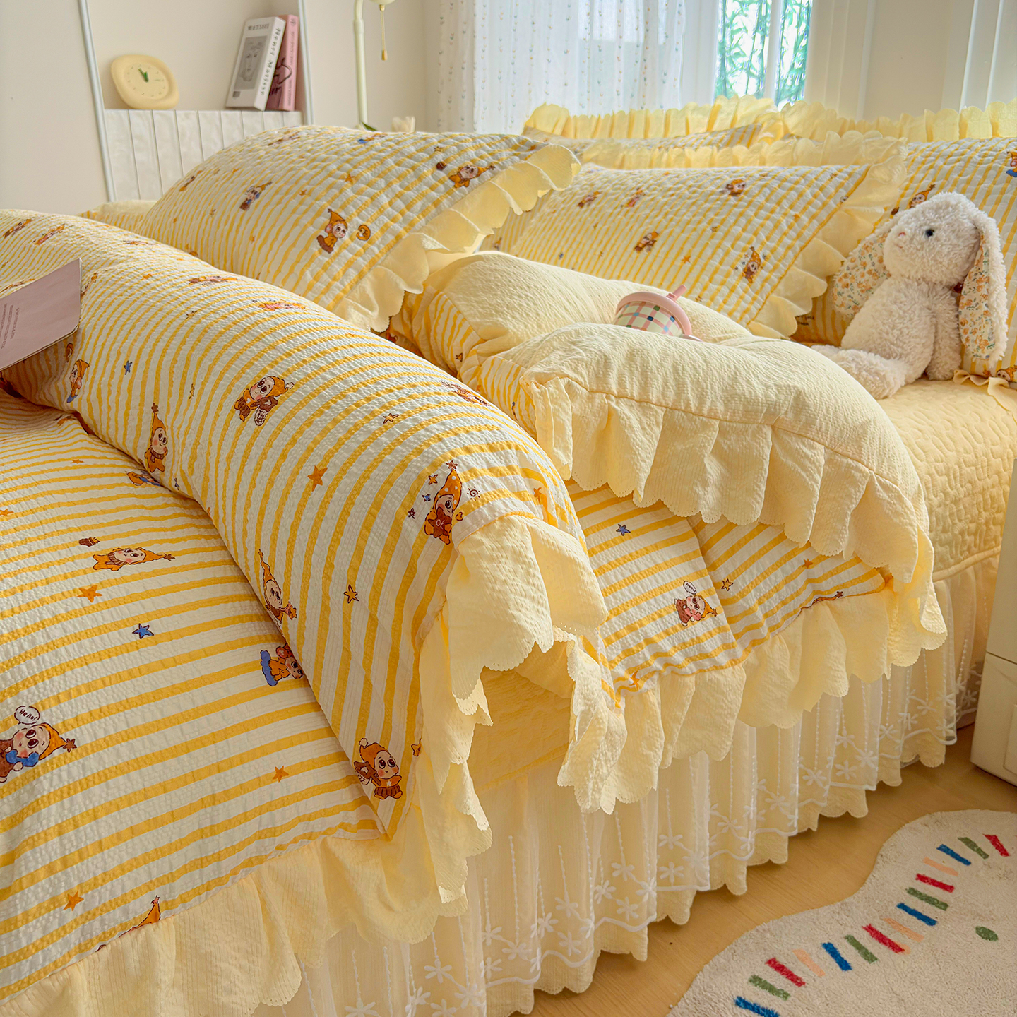 当前位置: 91家纺网 > 商品网购 > 床品套件 > 四件套 > 夏被四件套 > 绒耀家纺 2026春夏直播爆款泡芙棉云感双层纱皱皱纱韩式花边夏被四件套 星星人-AB