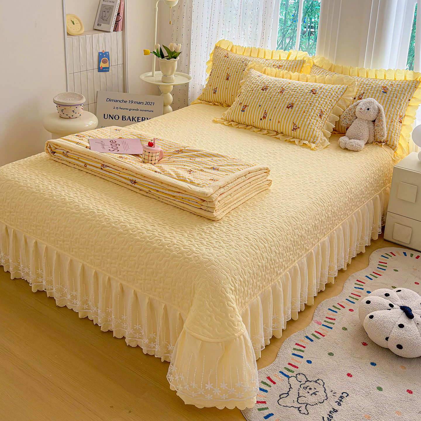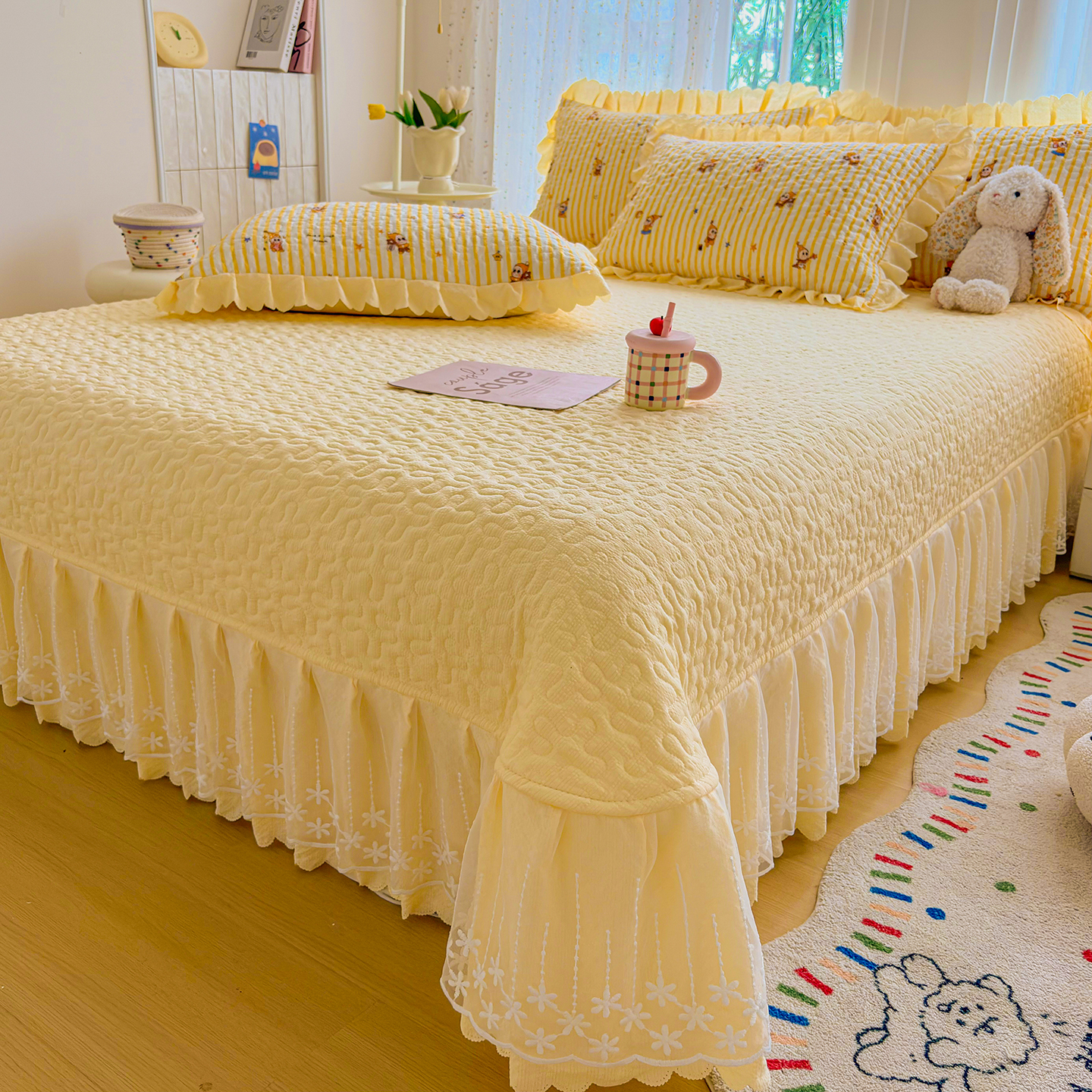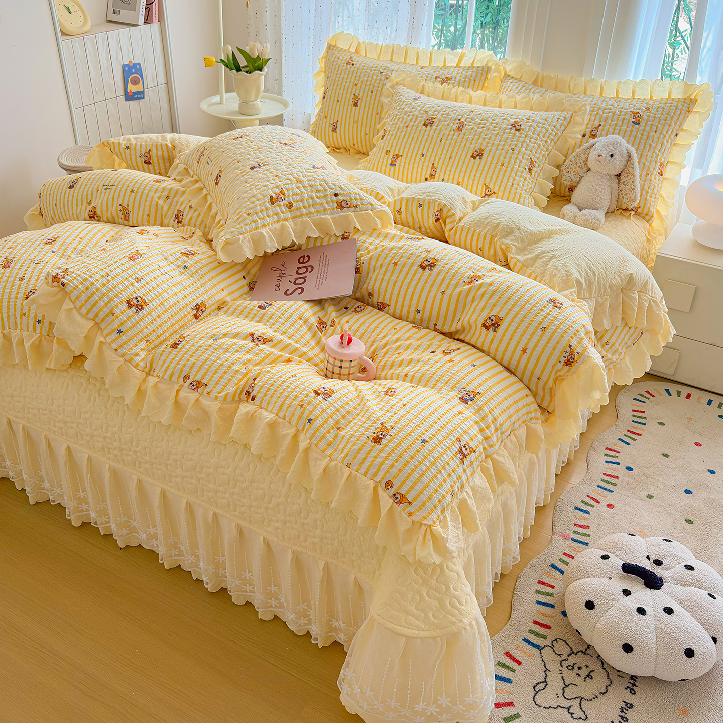 当前位置: 91家纺网 > 商品网购 > 床品套件 > 四件套 > 夏被四件套 > 绒耀家纺 2026春夏直播爆款泡芙棉云感双层纱皱皱纱韩式花边夏被四件套 星星人-AB