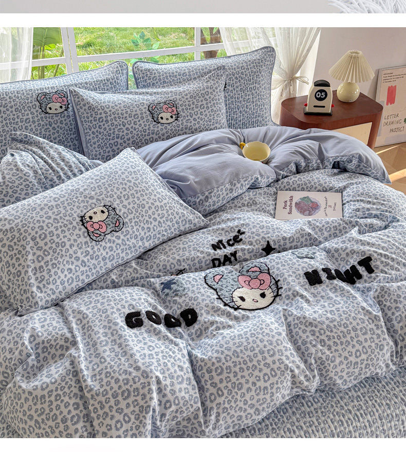 (总)恋佳居 2026新款毛巾绣古法棉床笠床盖四件套,粉豹甜猫,格趣萌熊,花狮轻梦,花兔小叙,花野遇美,蓝酷豹猫,迷雾紫兔,软萌时光