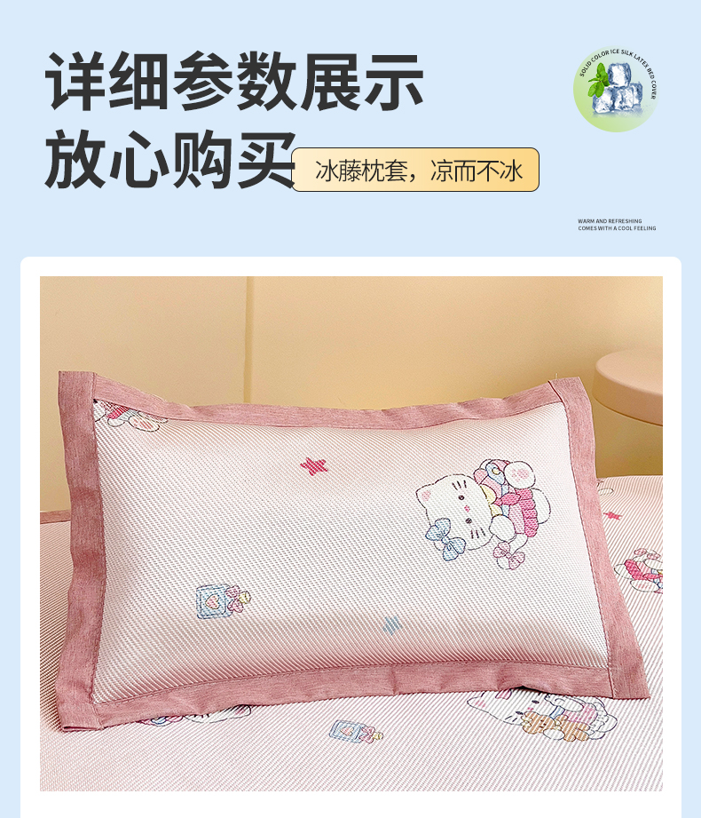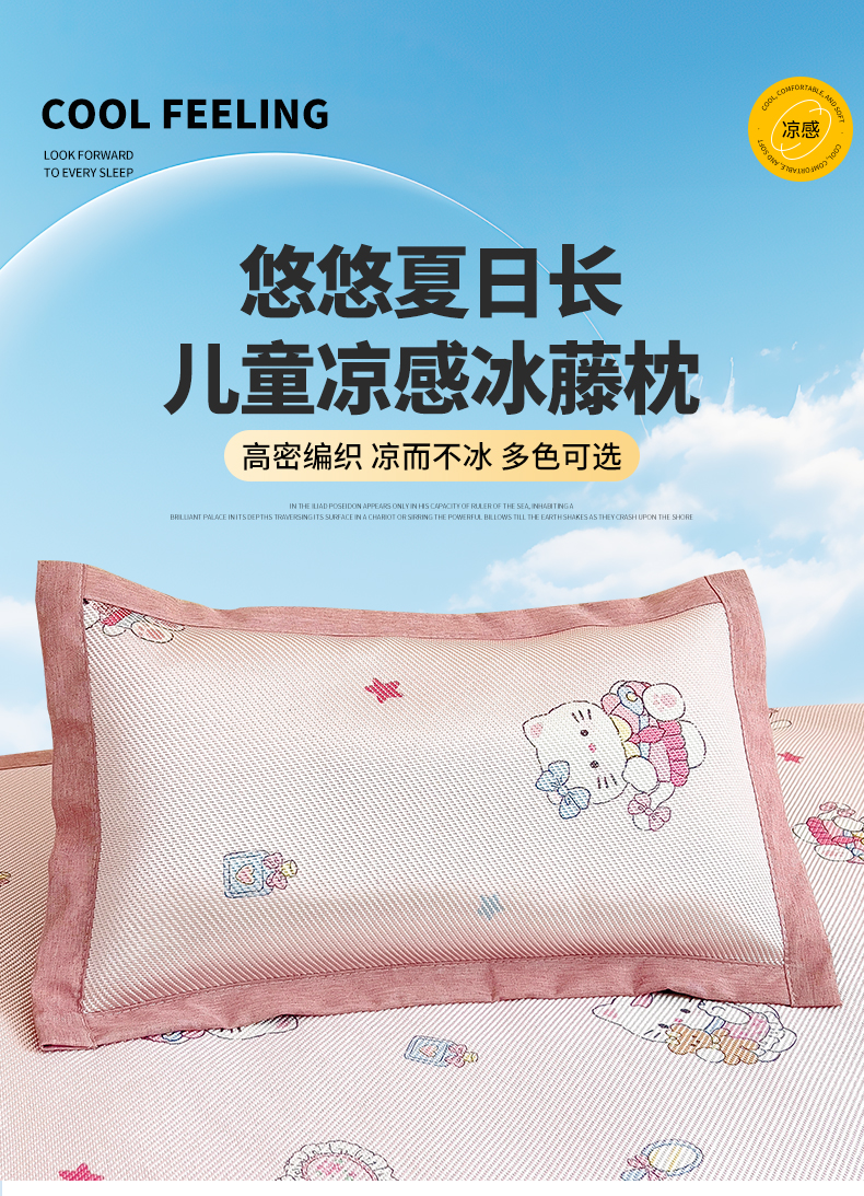 商品名称:鱼宝 2026新款儿童凉感冰藤枕套冰丝枕头枕芯 乐乐猫