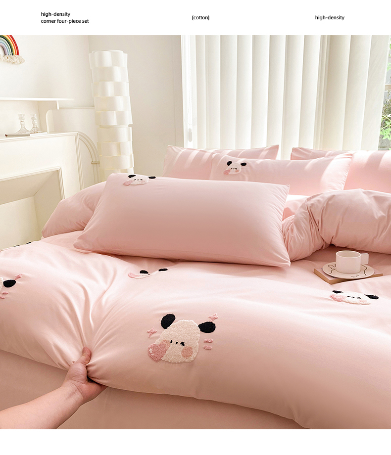 (总)眷恋家纺 2026新款卡通毛巾绣水洗棉四件套,迷你狗-米黄+浅粉,迷你狗-浅粉,迷你狗-天蓝,小幸运-米黄+咖,小幸运-浅粉+紫,小幸运-天蓝,熊猫-米黄+云川绿,熊猫-奶油黄