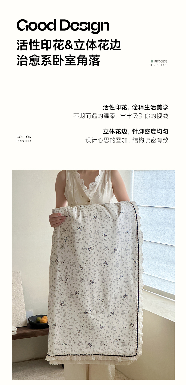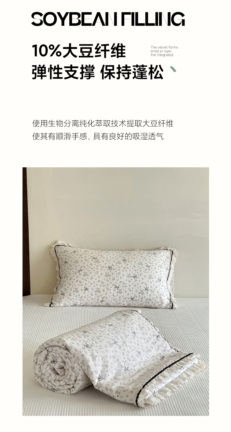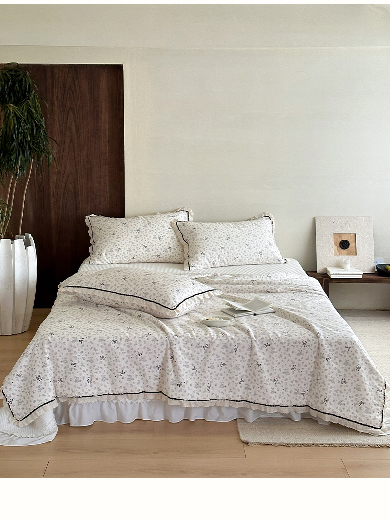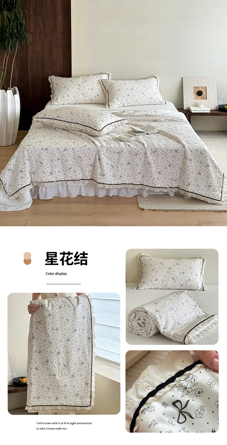 商品名称:一加一 2026新款全棉活性印花立体花边大豆夏被夏凉被空调被四件套 星花结