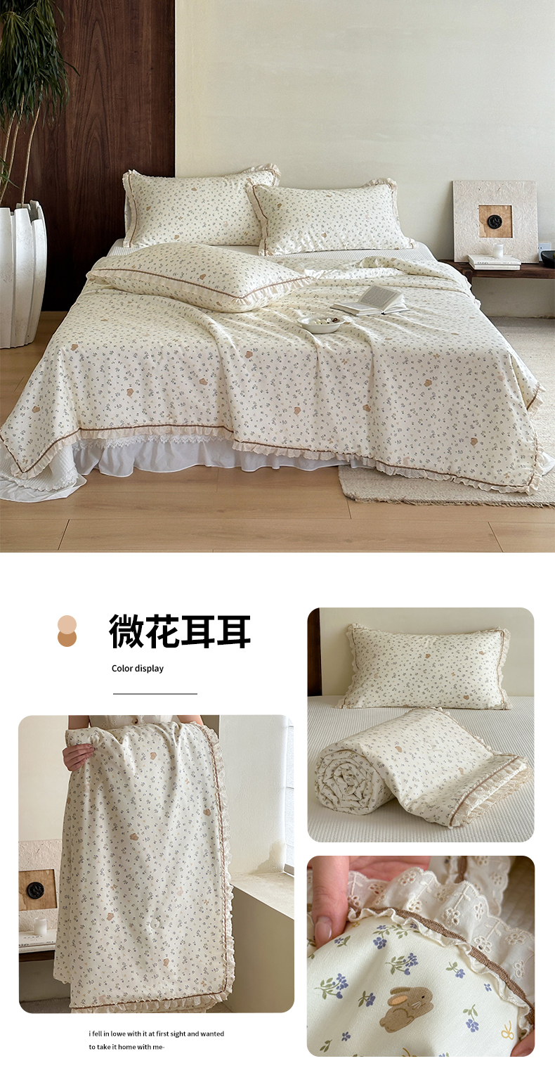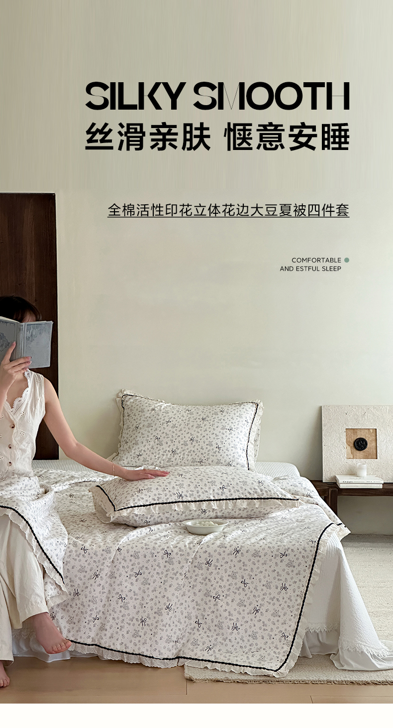 (总)一加一 2026新款全棉活性印花立体花边大豆夏被夏凉被空调被四件套,组合图仅供展示不可下单,绿芜汀,泡泡小象,浅茶春樱,浅纹蓝,浅星纱,蔷薇凝,微花耳耳,小镇漫游记,星花结,杏仁小熊仔