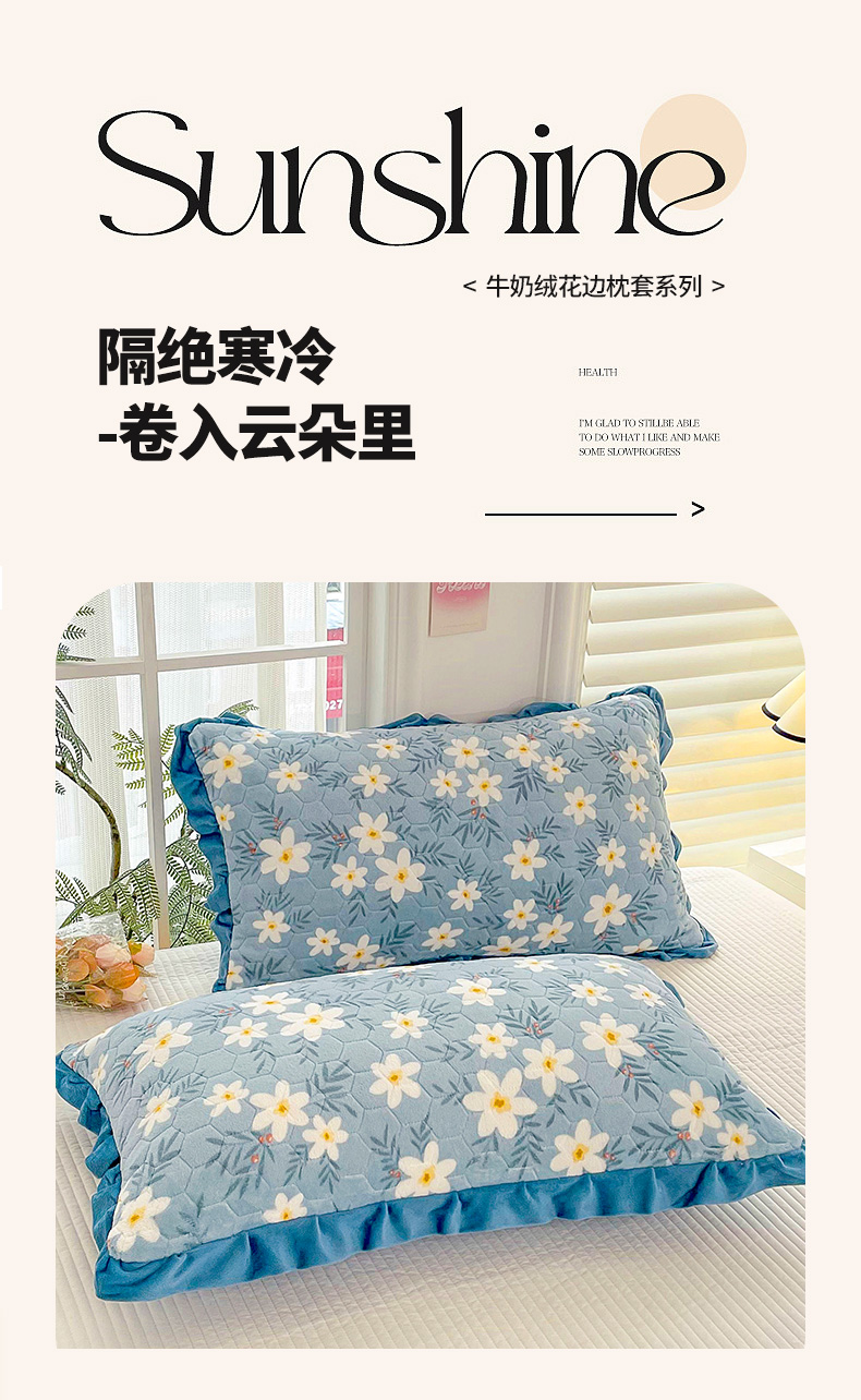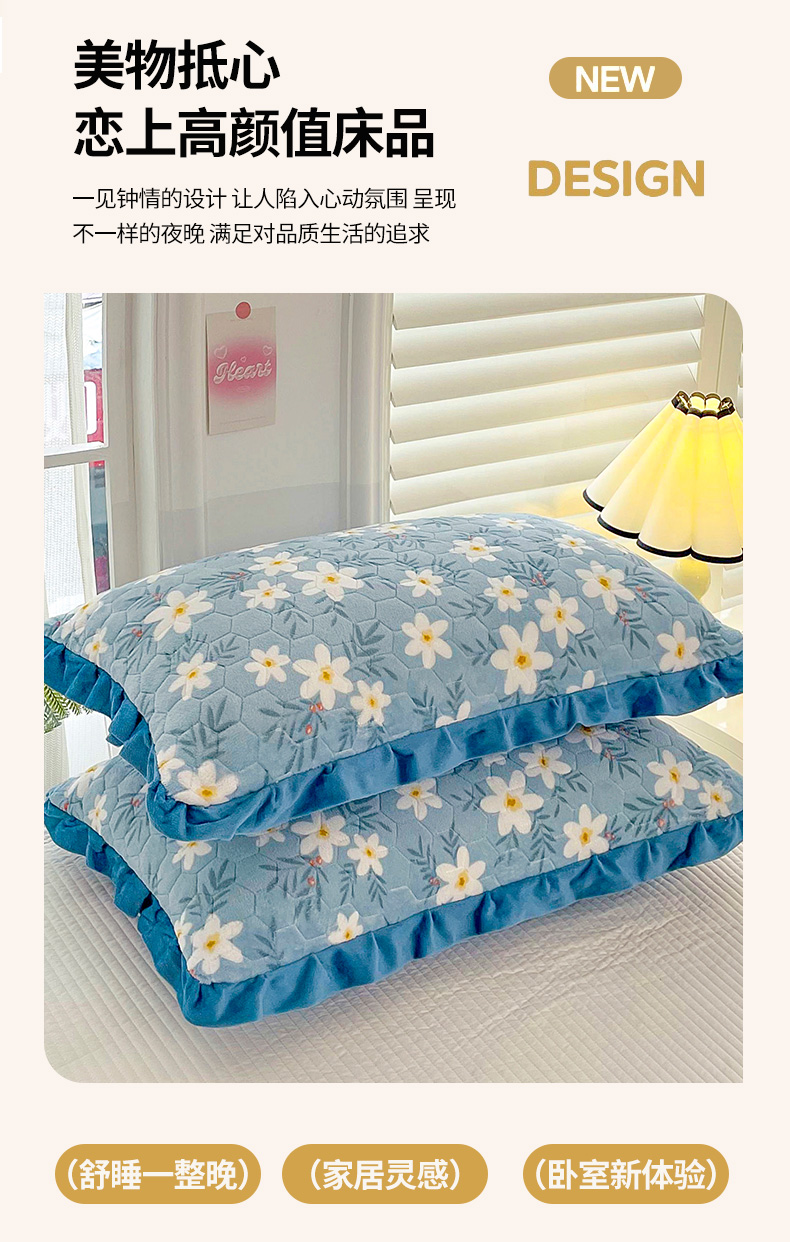 商品名称:莉迪娅 2026新款法兰绒花边枕套牛奶绒枕套韩版枕套 爱心粉