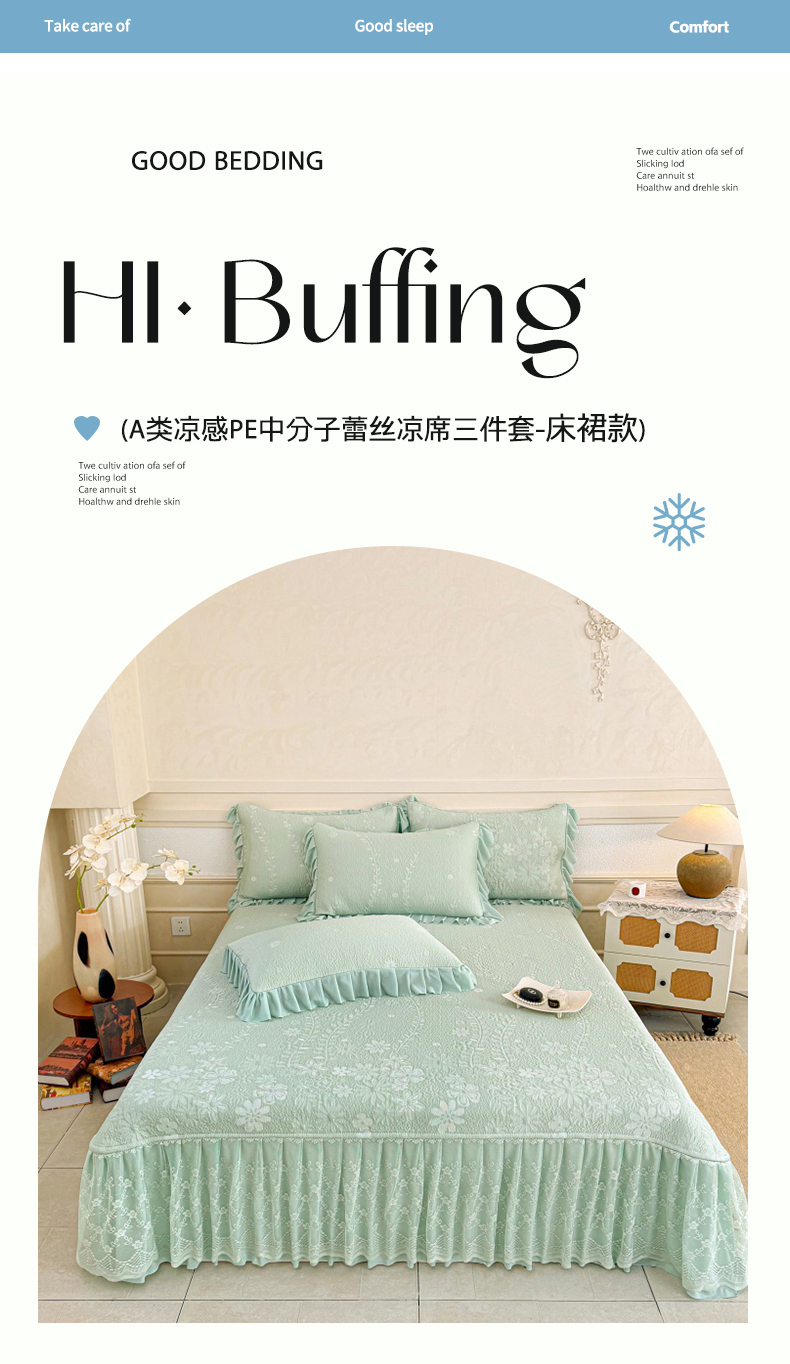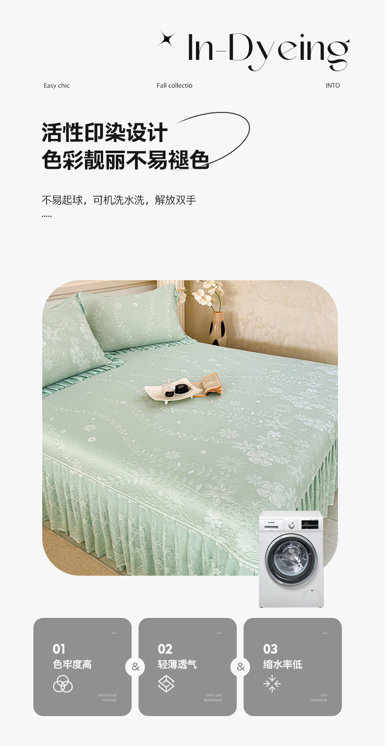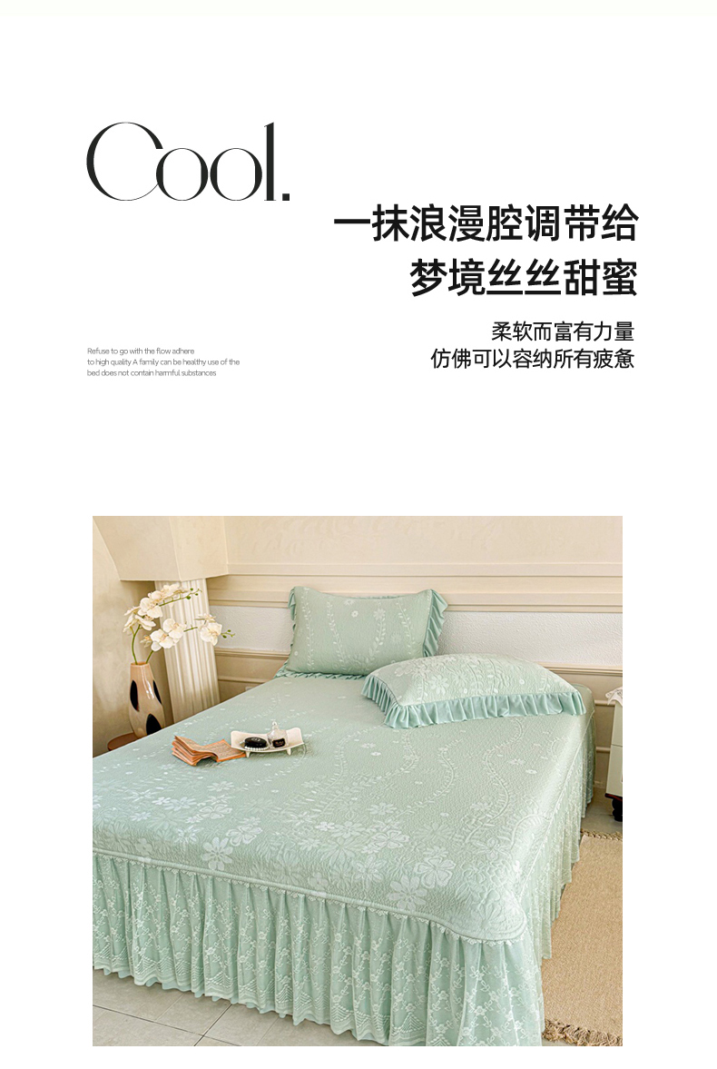 (总)金绣美居 2026新款PE高分子凉感席冰感床裙款三件套-安然影 (控价不低于199元),安然影-豆沙粉,安然影-蓝色,安然影-清水绿,安然影-紫色