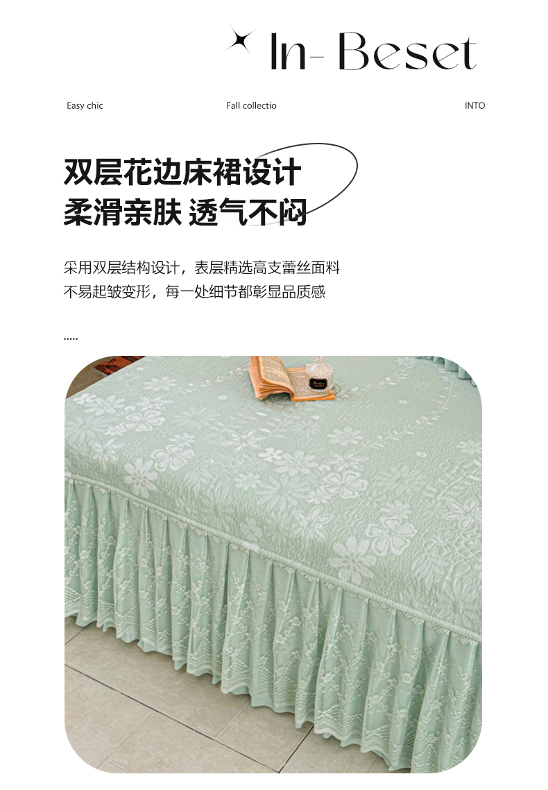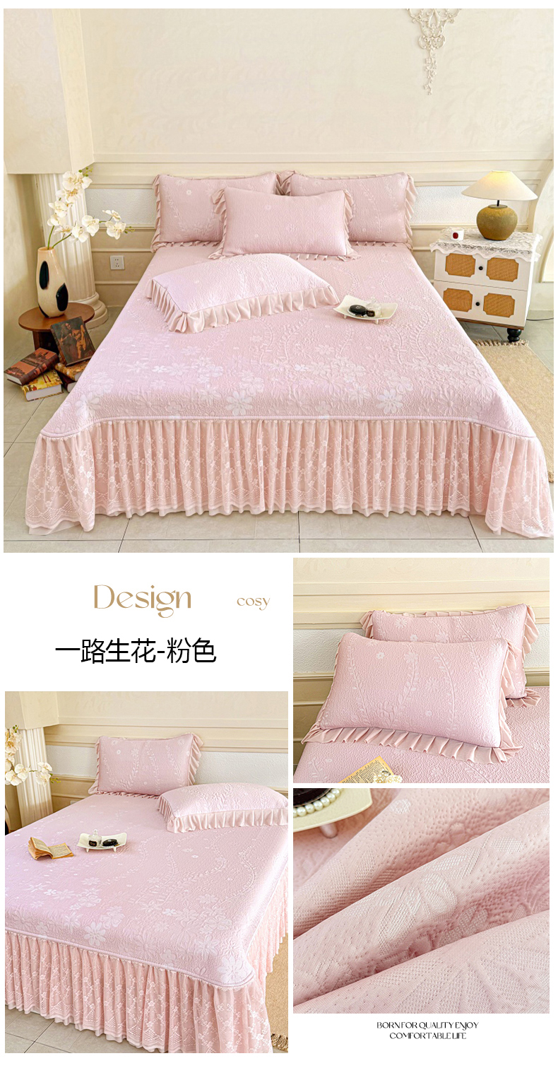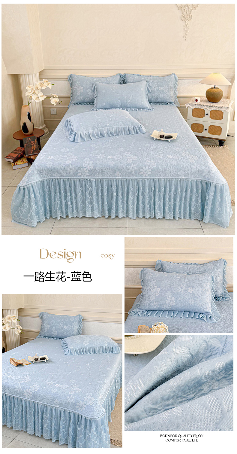 (总)金绣美居 2026新款PE高分子凉感席冰感床裙款三件套-安然影 (控价不低于199元),安然影-豆沙粉,安然影-蓝色,安然影-清水绿,安然影-紫色