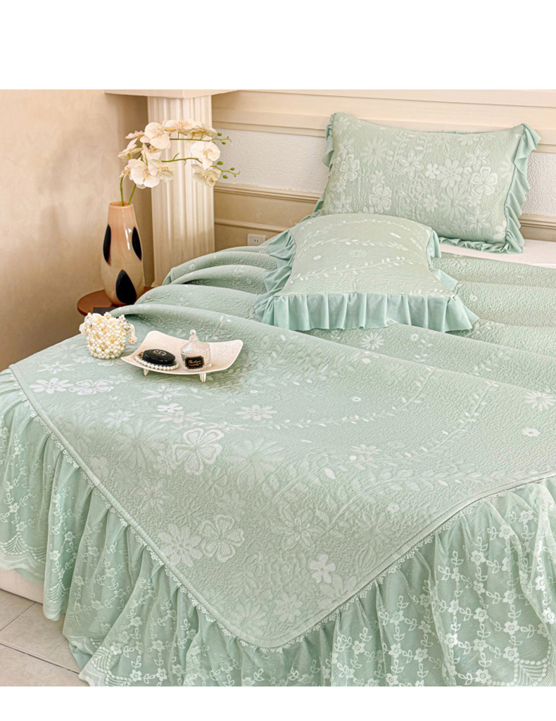 金绣美居 2026新款PE高分子凉感席聚乙烯冰感床裙款凉席三件套-一路生花 一路生花-绿色