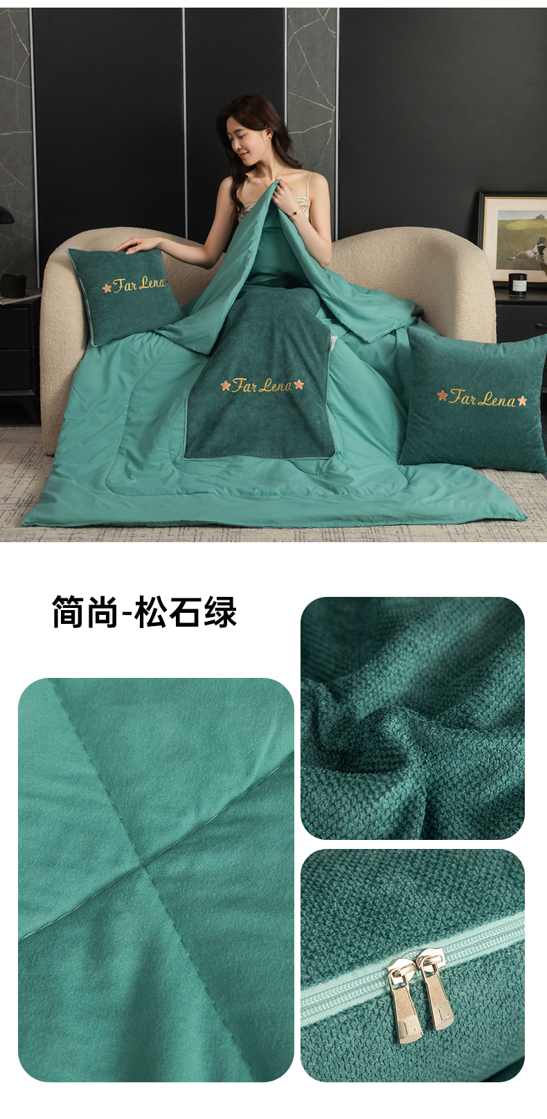 (总)雷娜家居 复合凉感 简约商务款抱枕被,商务卡其,商务灰,商务粉,商务紫,商务绿,商务蓝