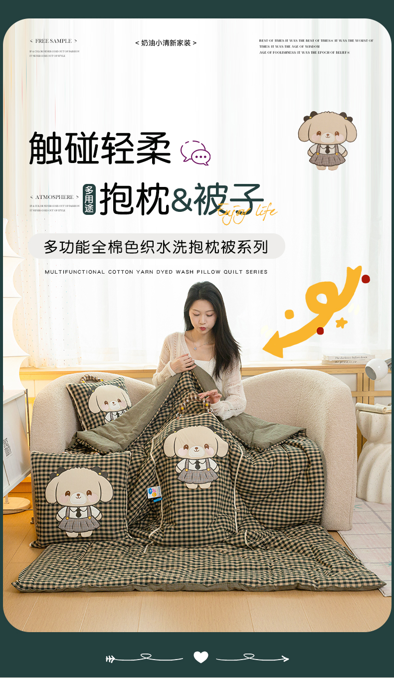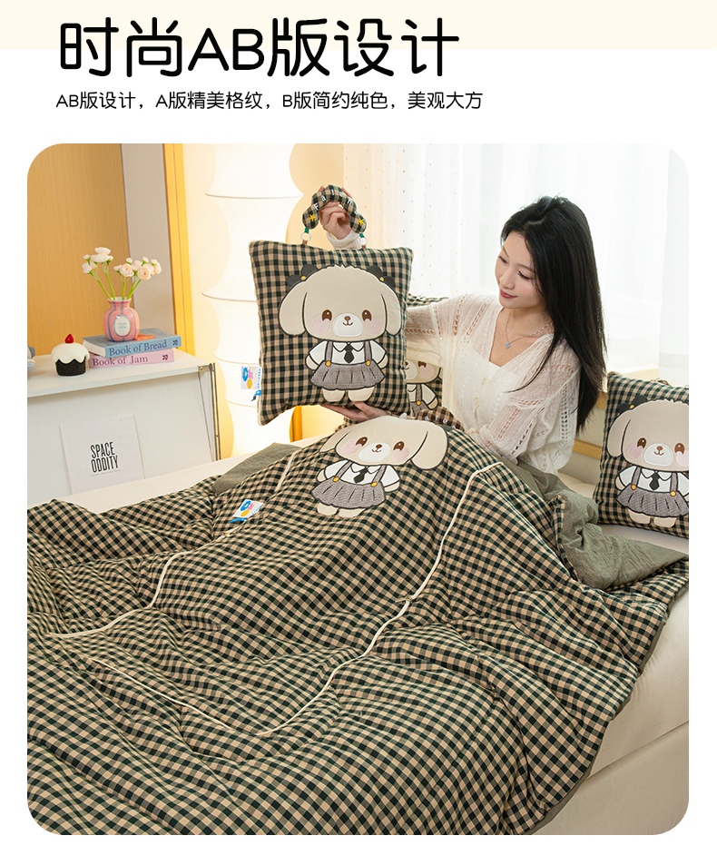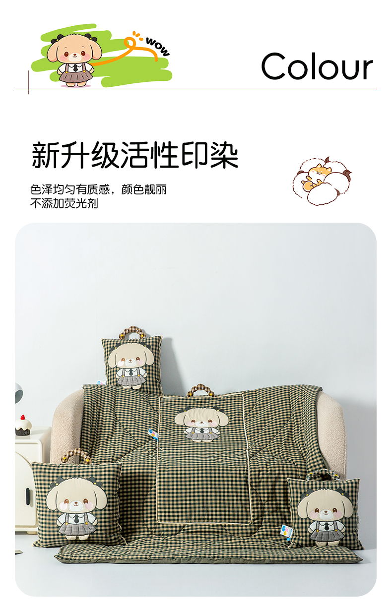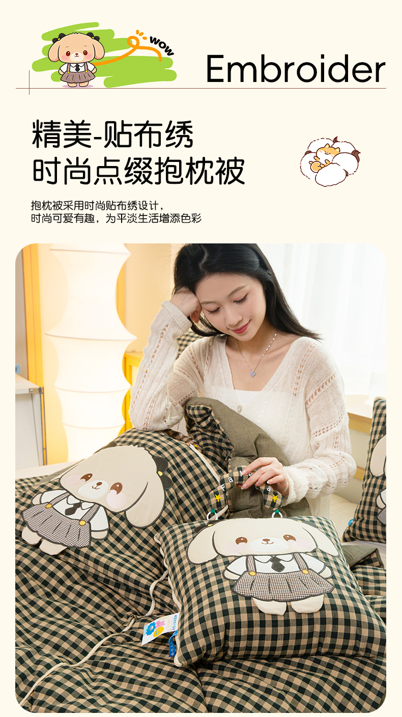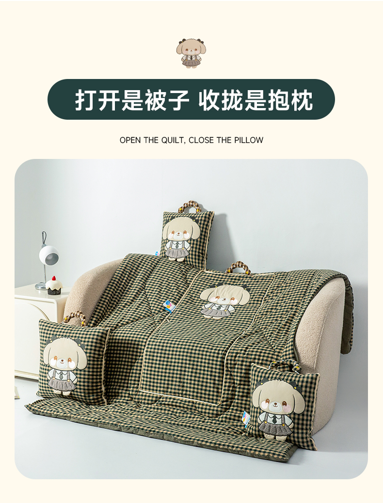 商品名称:雷娜家居 2026新款全棉纯棉色织羞羞狗抱枕被 羞羞狗绿