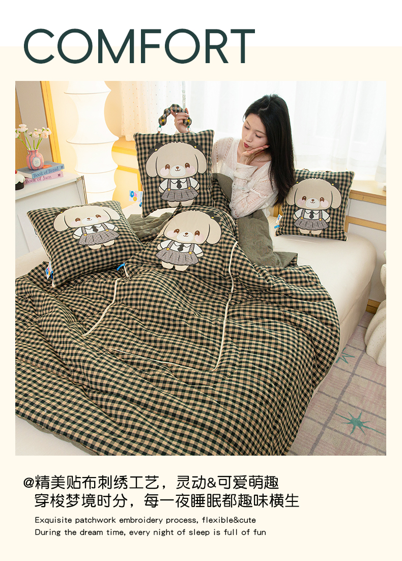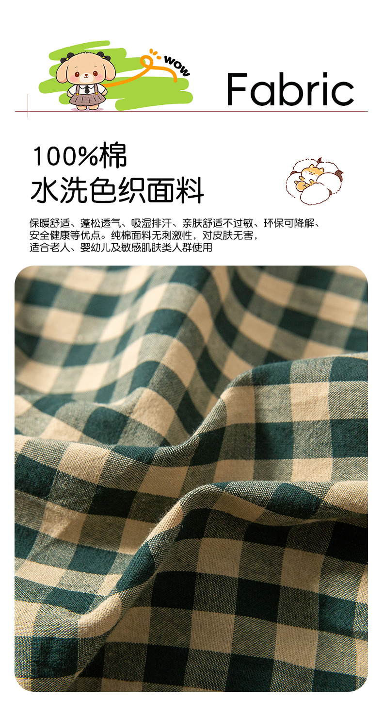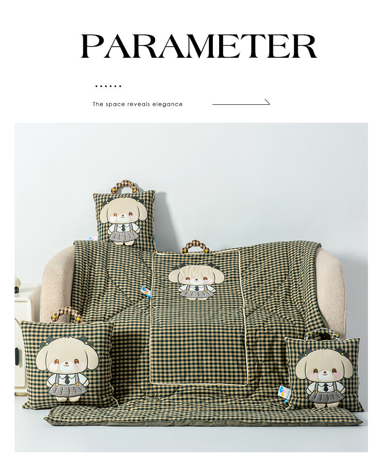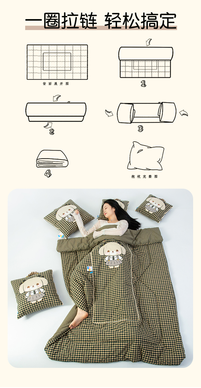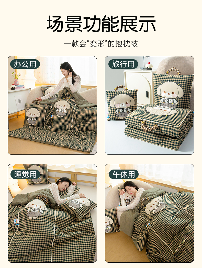 商品名称:雷娜家居 2026新款全棉纯棉色织羞羞狗抱枕被 羞羞狗绿