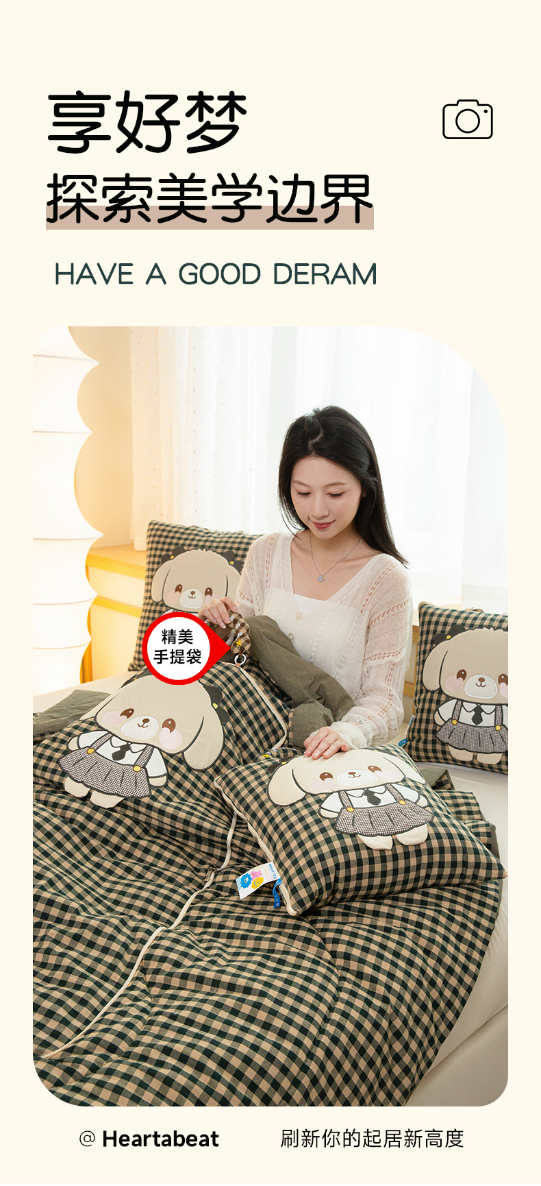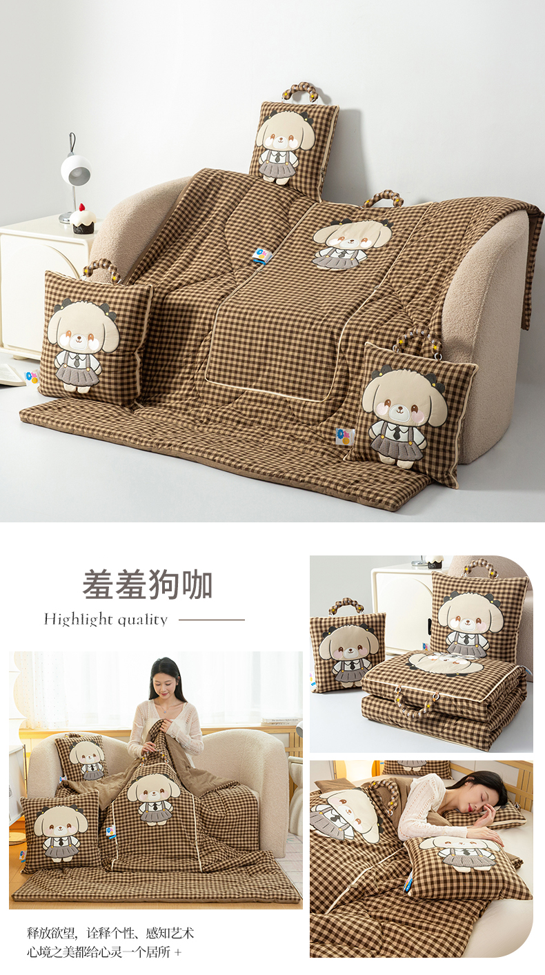 (总)雷娜家居 2026新款全棉纯棉色织羞羞狗抱枕被,羞羞狗红,羞羞狗咖,羞羞狗绿